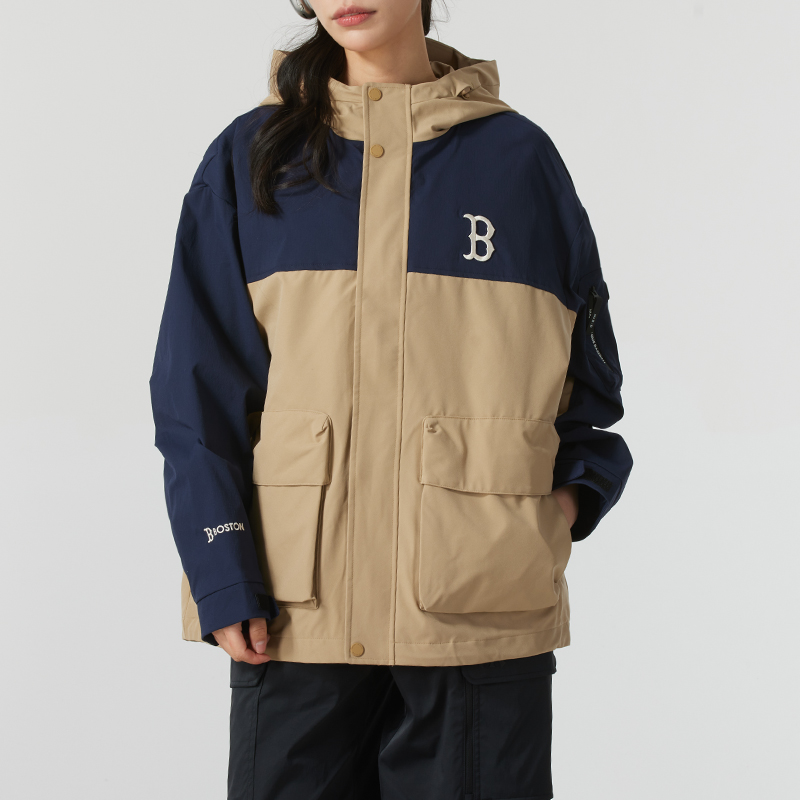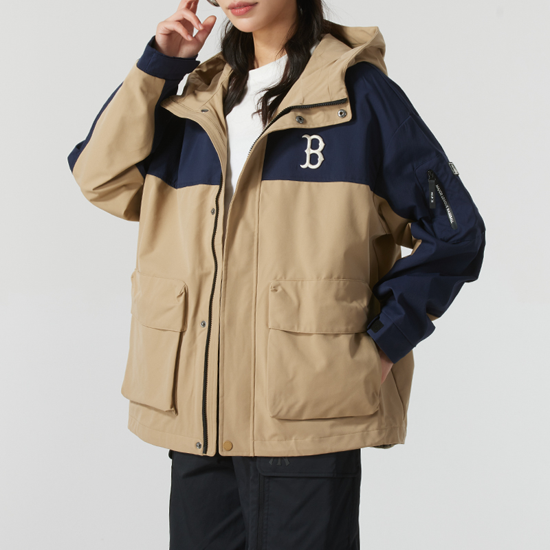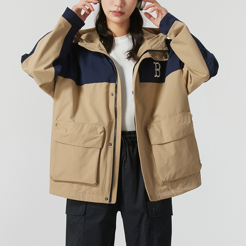 MLB男女情侣款秋季基础夹克梭织连帽上衣抗沾水休闲户外冲锋外套