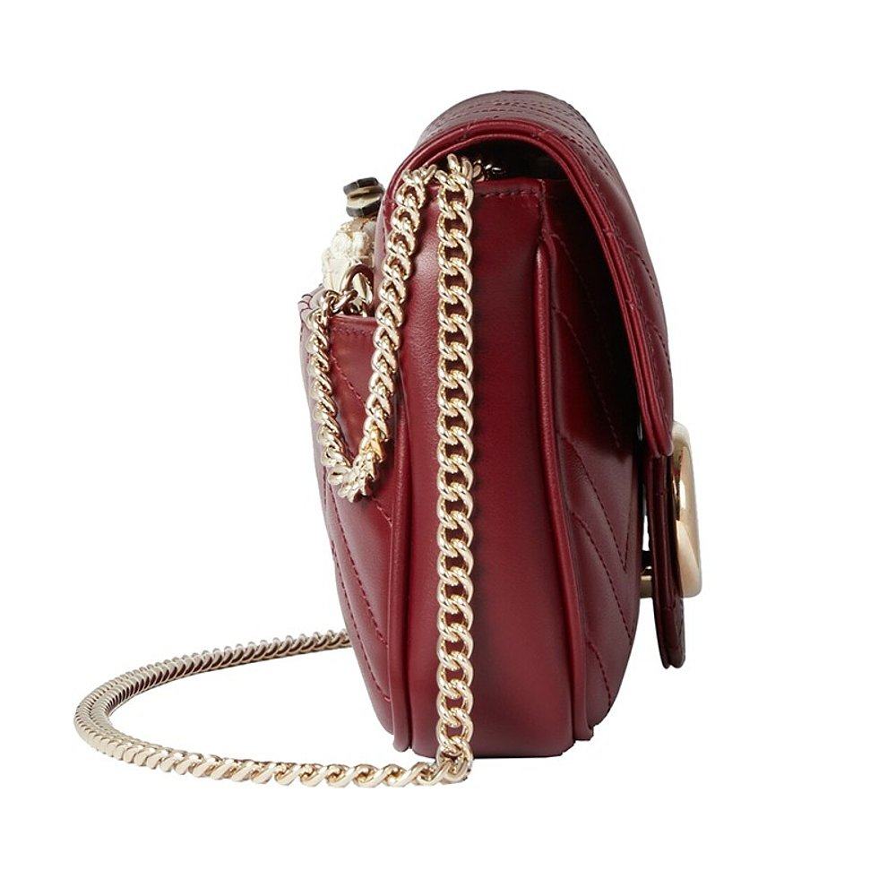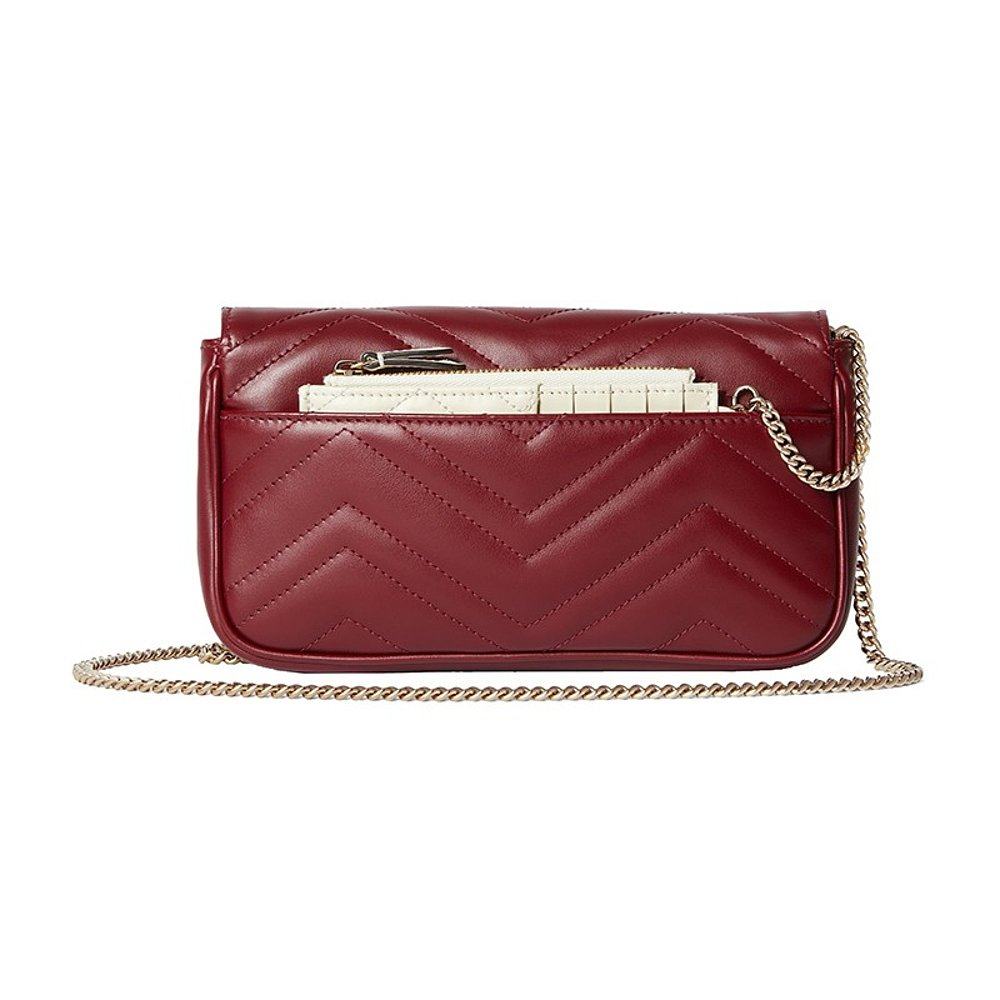 GUCCI/古驰 马蒙系列女士迷你红色皮革配白色卡包单肩包