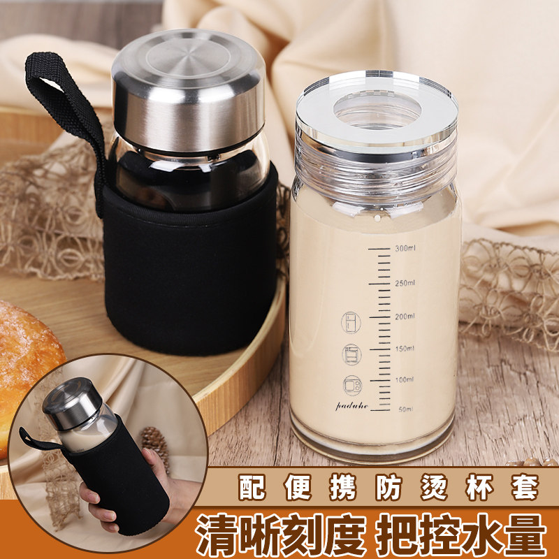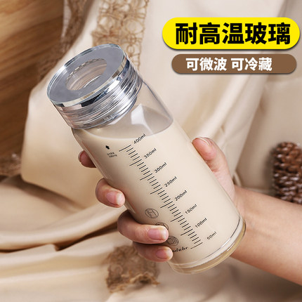 牛奶杯儿童玻璃刻度家用外带咖啡豆浆杯微波炉耐高温水杯带盖杯子