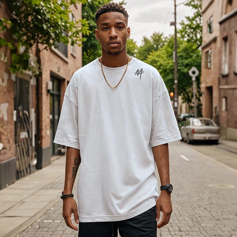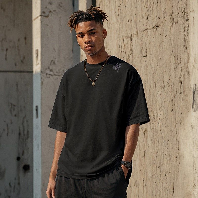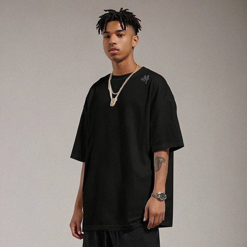300g美式重磅宽松胖子T恤白色短袖五分袖纯棉情侣加肥加大码男装