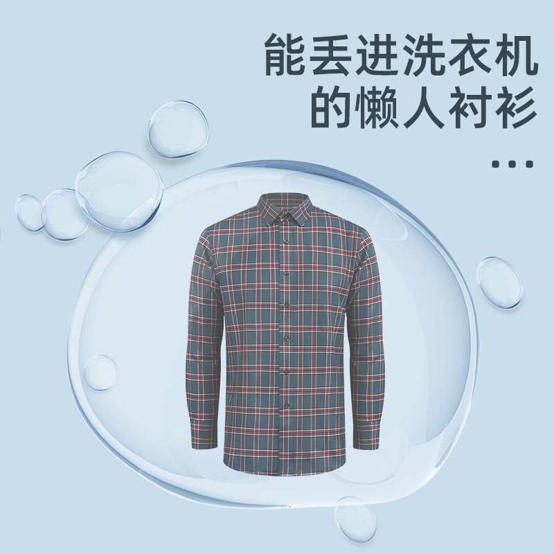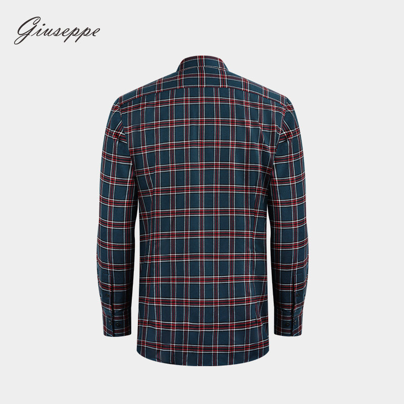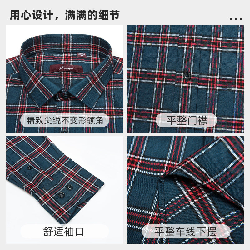 乔治白秋冬男士时尚休闲尖领格子长袖衬衫修身含绵羊毛厚上衣