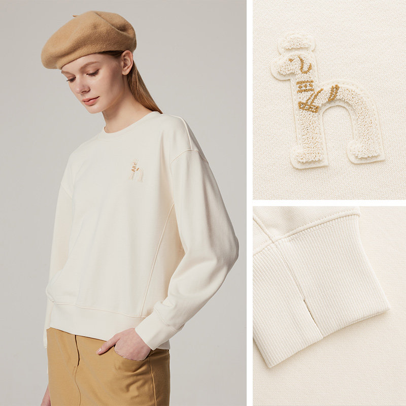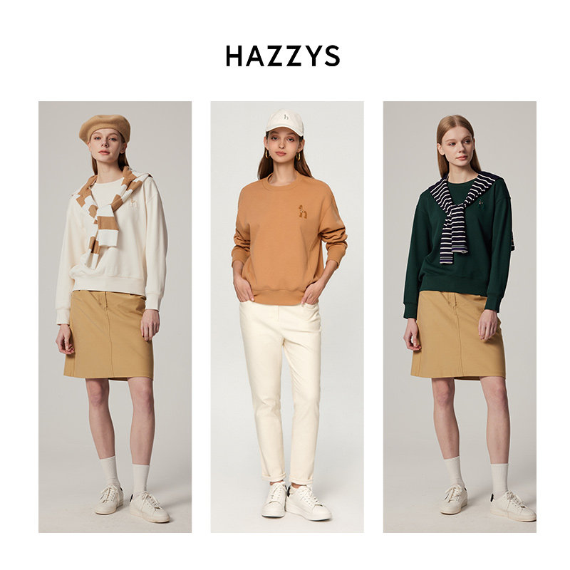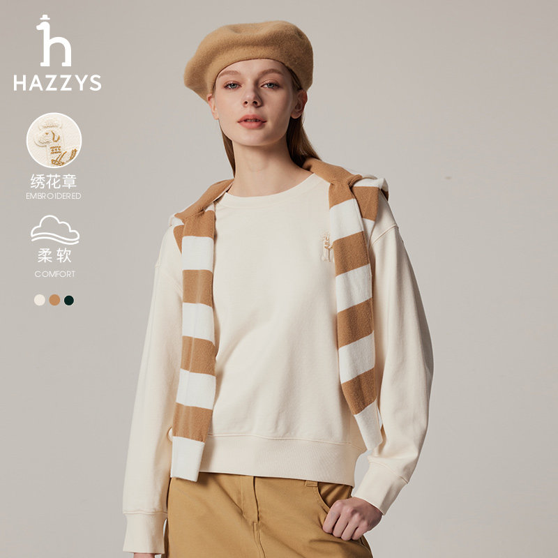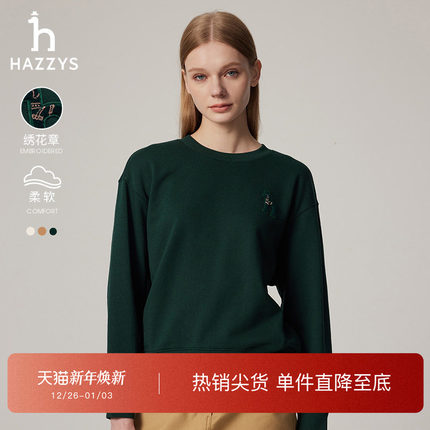 Hazzys哈吉斯休闲纯棉卫衣女秋冬套头通勤休闲长袖T恤上衣潮