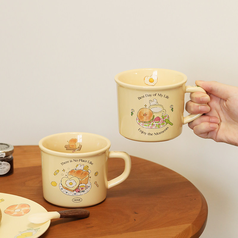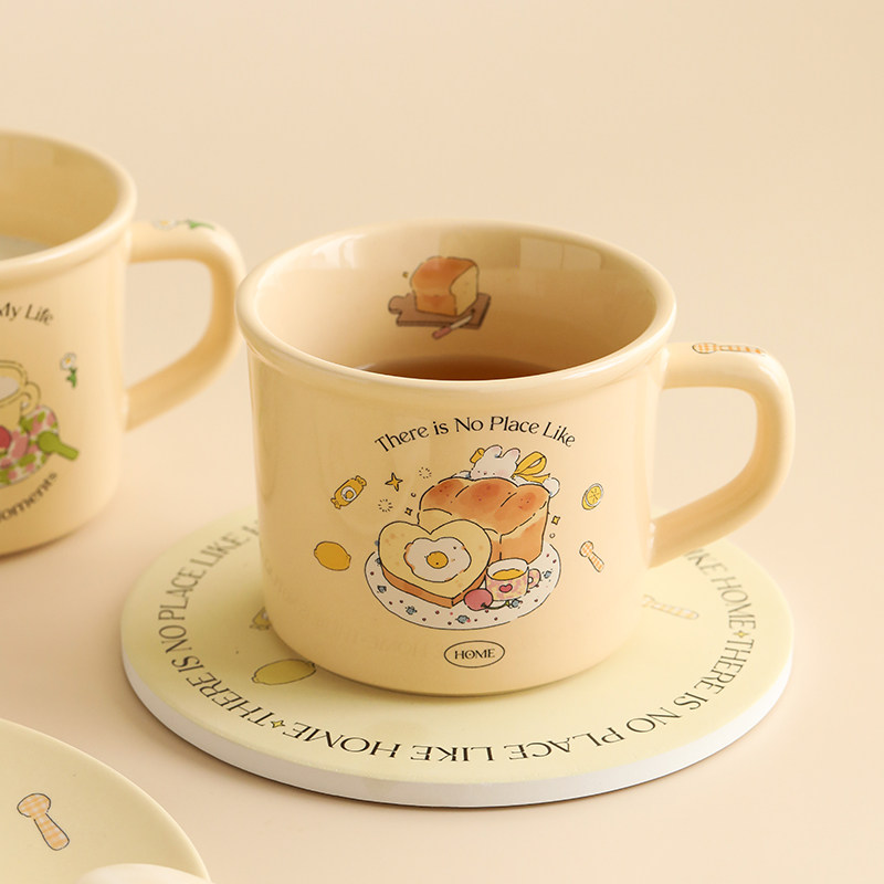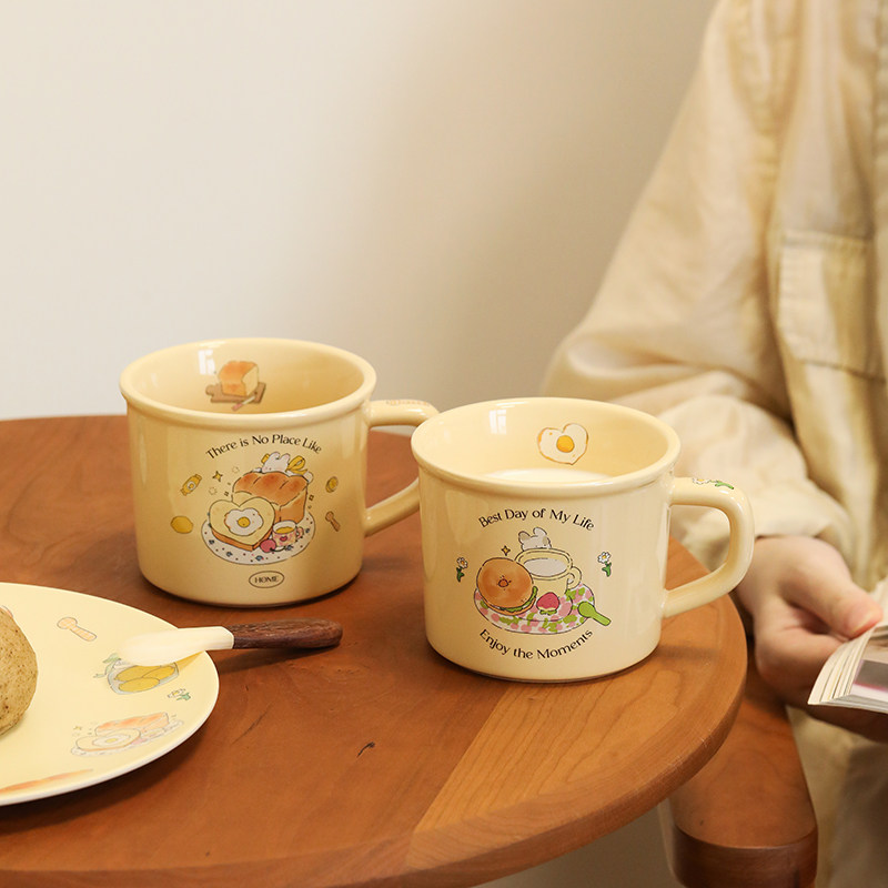 蓝莲花陶瓷耐高温可加热大杯子家用可爱水杯瓷杯早餐杯马克杯咖啡