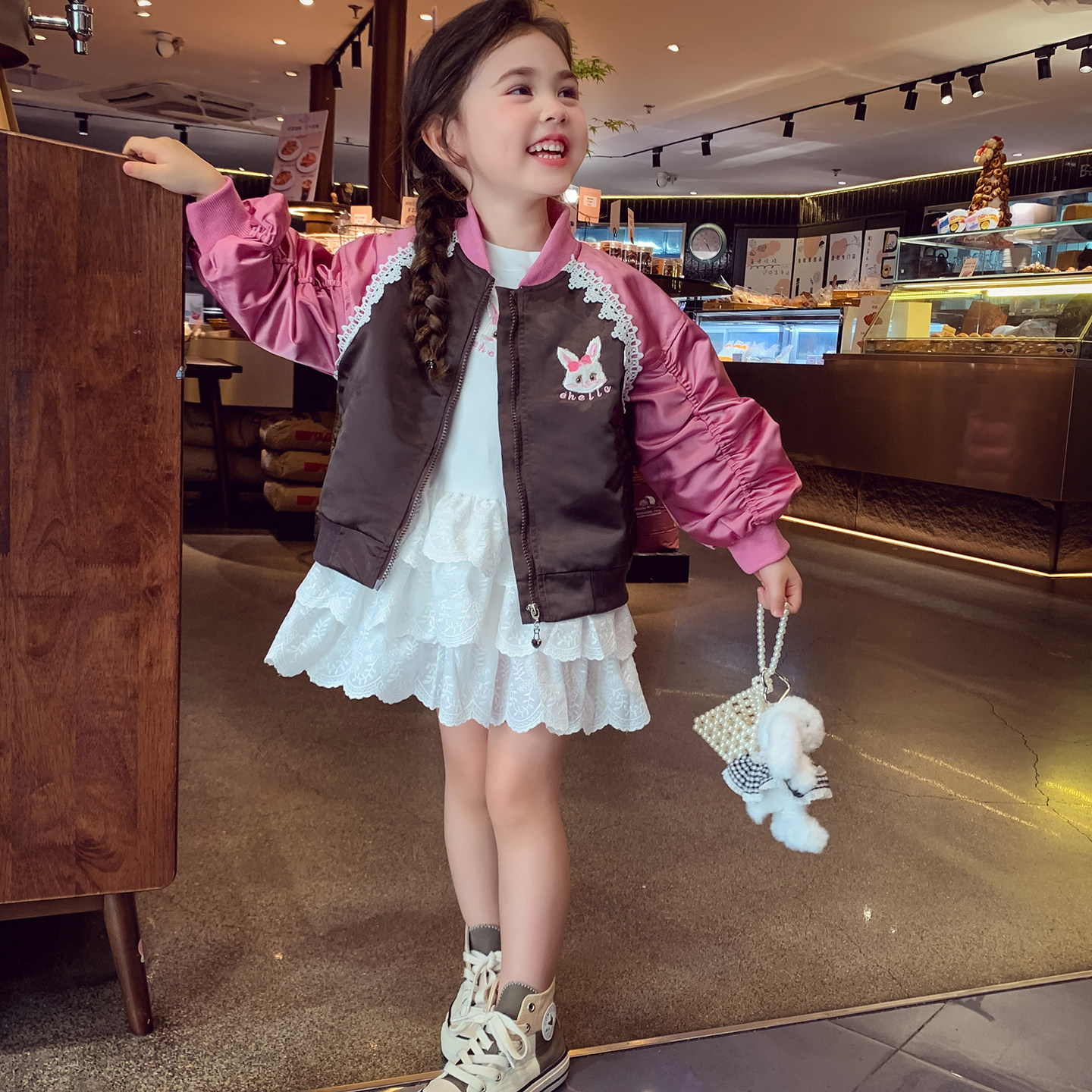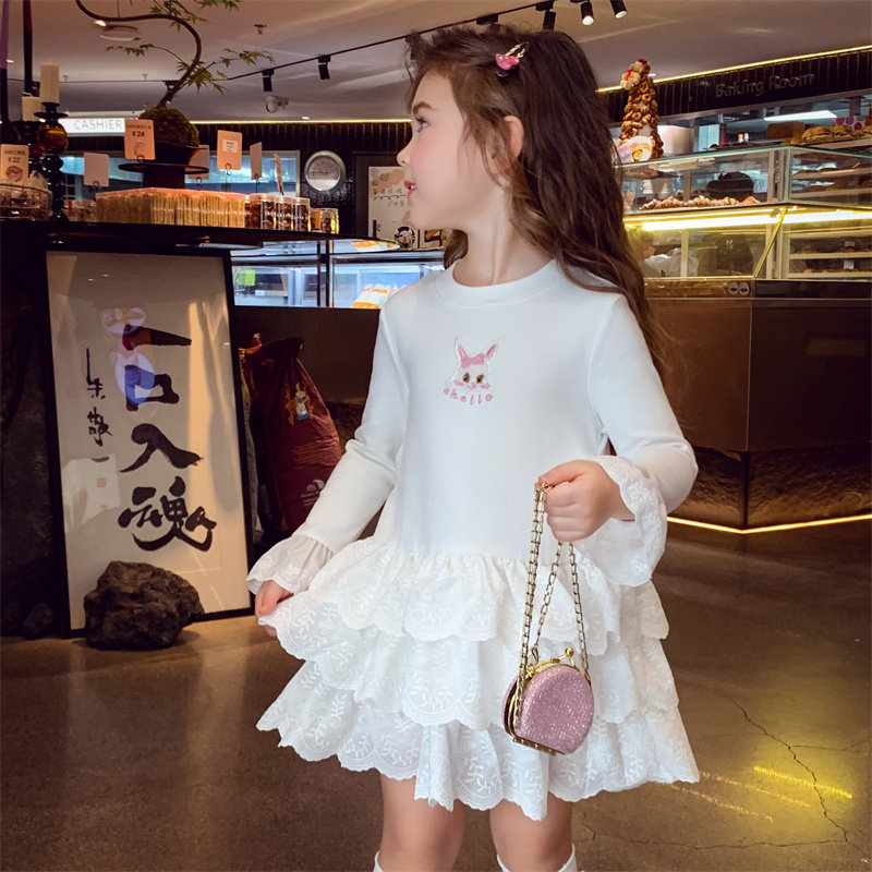 女童连衣裙春装2026新款洋气儿童白色公主蛋糕裙小女孩长袖打底裙