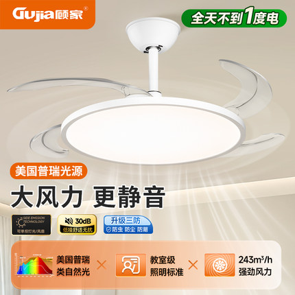 顾家超薄护眼全光谱风扇灯2026年新款客厅餐厅卧室静音大风吊扇灯