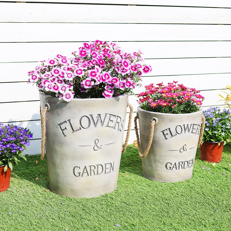 日式手提花桶圆形花盆落地式花器复古花园装饰花园阳台做旧小杂货