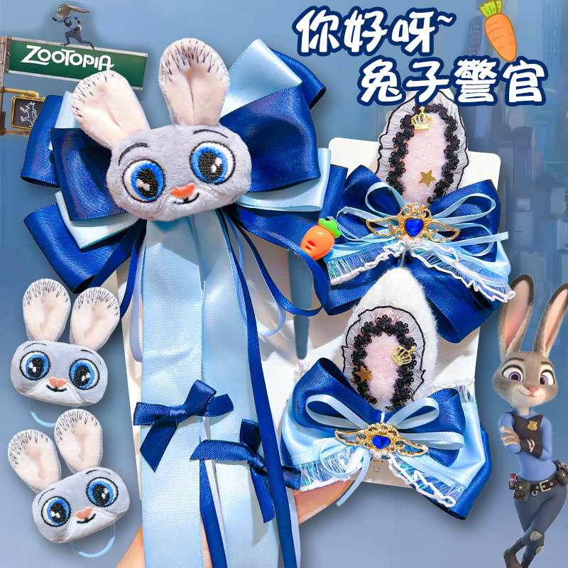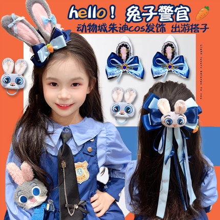 迪士尼兔子警官头饰朱迪发饰兔耳朵发箍女游园装备疯狂动物城配饰