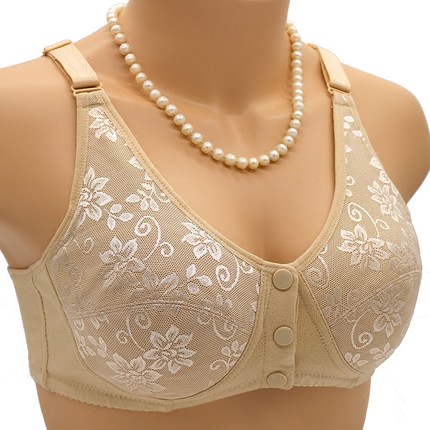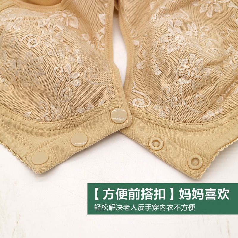 老人文胸前扣无钢圈纯棉布胸罩通用中年妈妈奶奶夏季薄透气内衣女