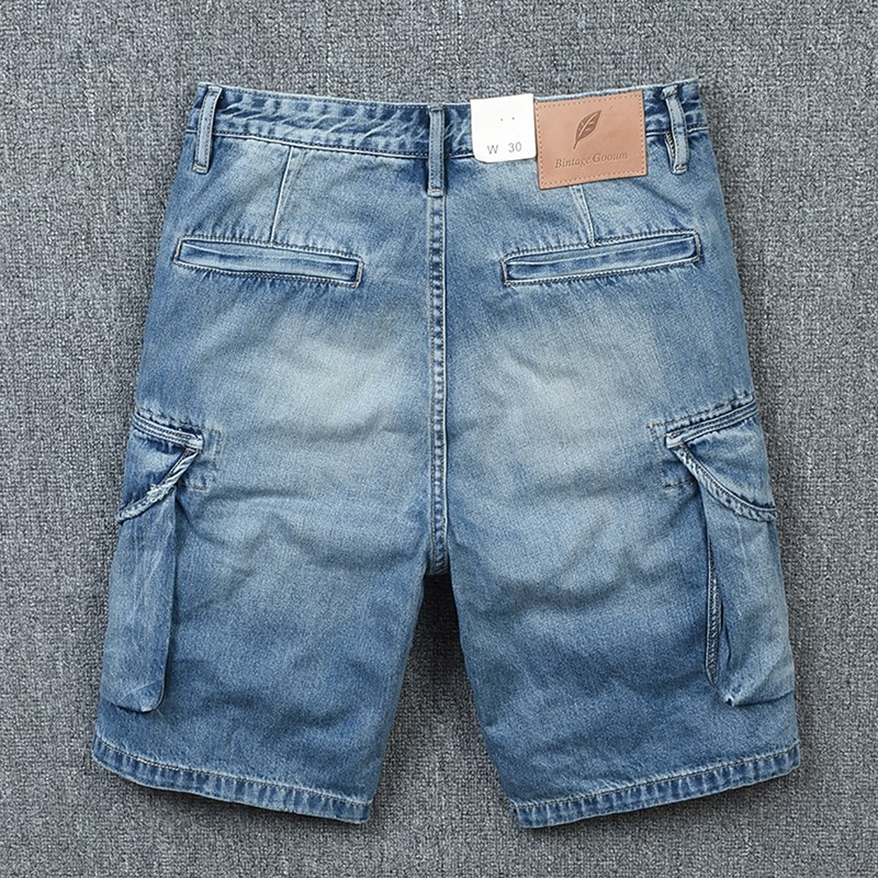 美式复古牛仔短裤男潮牌夏季纯棉水洗工装直筒五分裤男士5分中裤