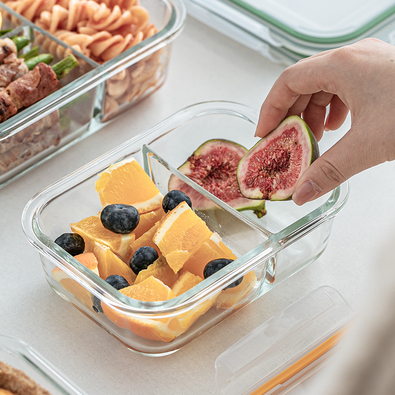 饭盒日本luntayo微波炉加热上班族带饭餐盒玻璃保鲜碗分隔便当盒