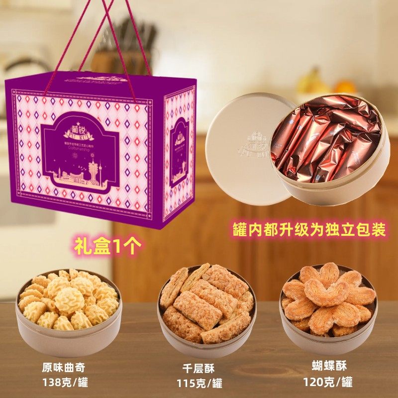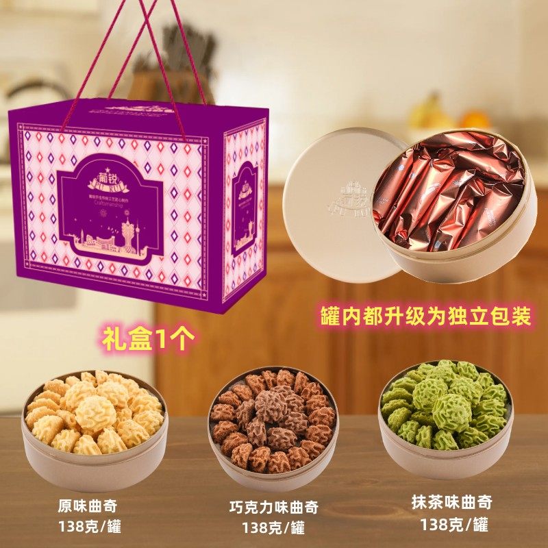 澳门葡锐小金盒手信*3盒黄油小花曲奇抹茶巧克力味饼干糕点心送礼
