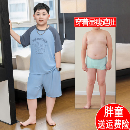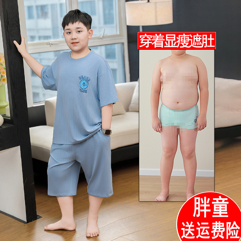 胖男童家居服套装加肥加大夏季青少年宽松凉感空调服薄睡衣两件套