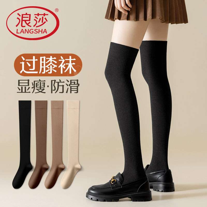 浪莎过膝袜女春秋季高筒过膝盖压力显瘦大腿袜秋冬护膝女士长筒袜
