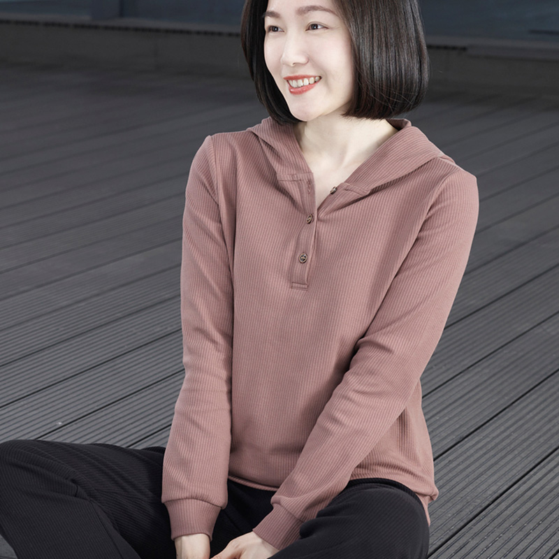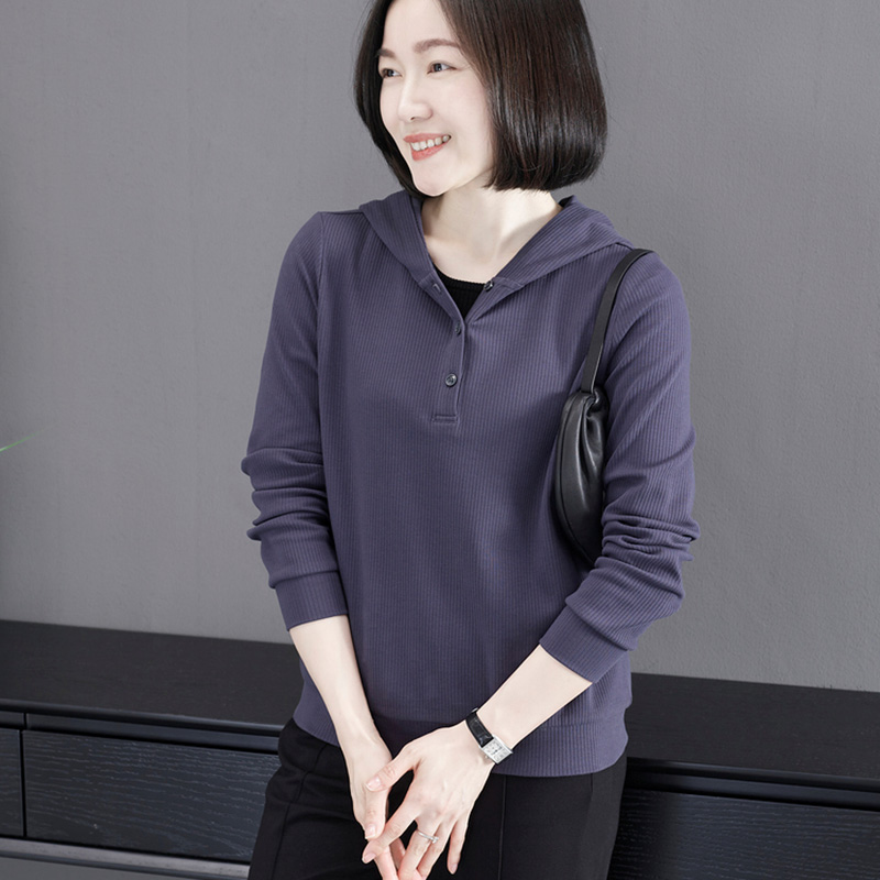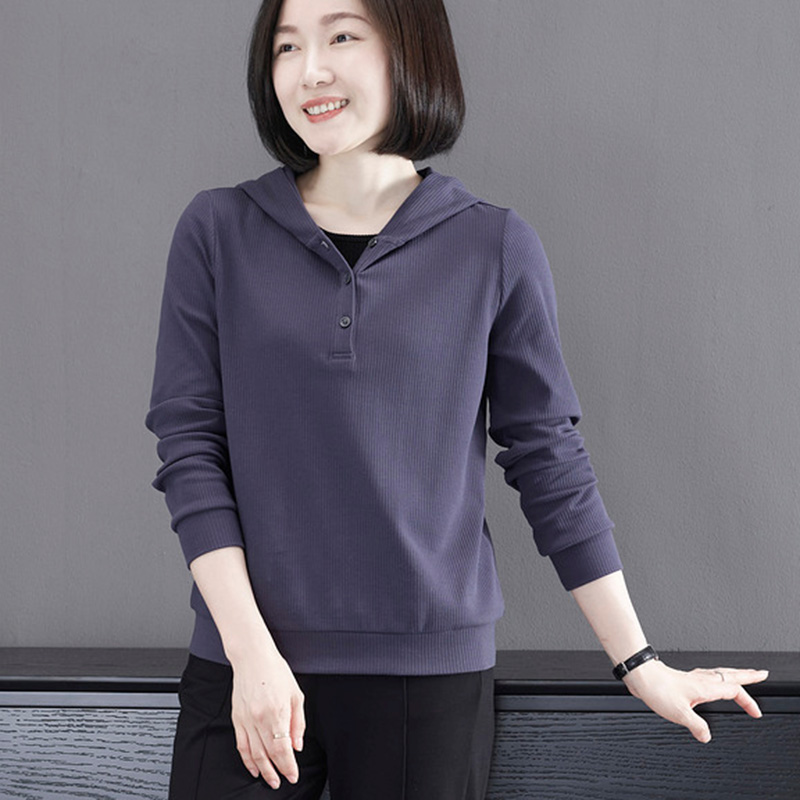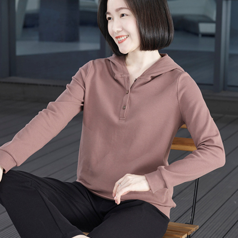 纯棉连帽长袖t恤女式春秋新款帽衫上衣减龄好看大码宽松薄款卫衣
