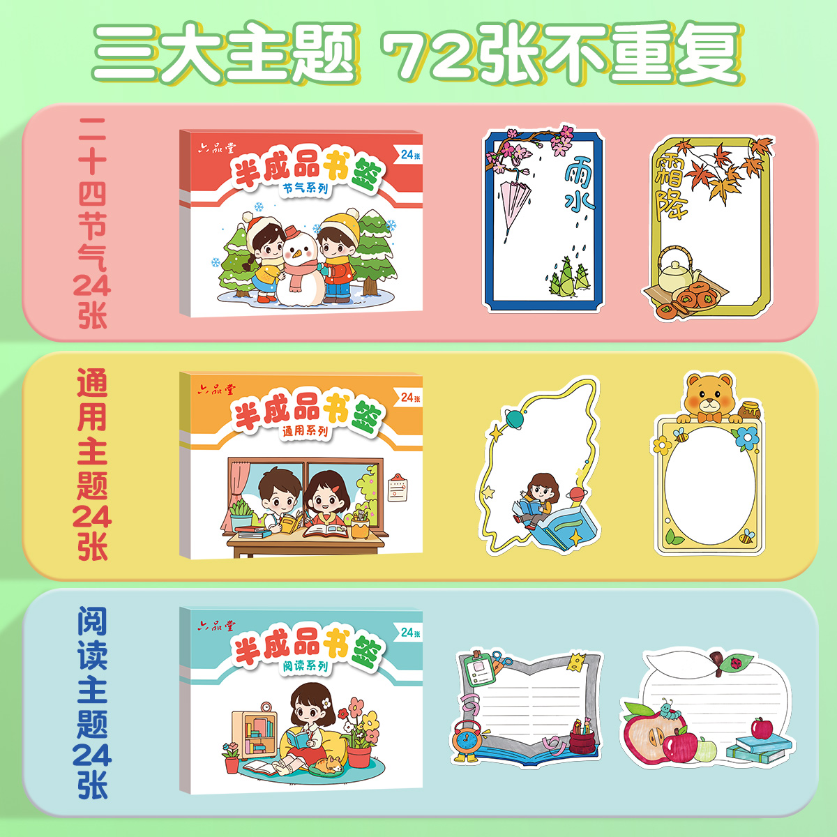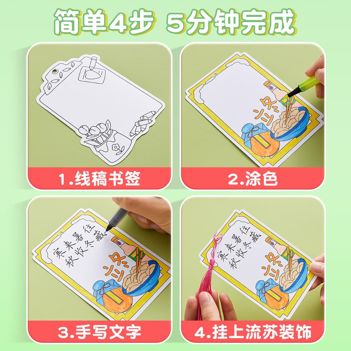 六品堂书签手工diy材料儿童礼物ins风二十四节气主题阅读绘画线稿手绘画纸书签创意卡通可爱小学生精致卡片纸