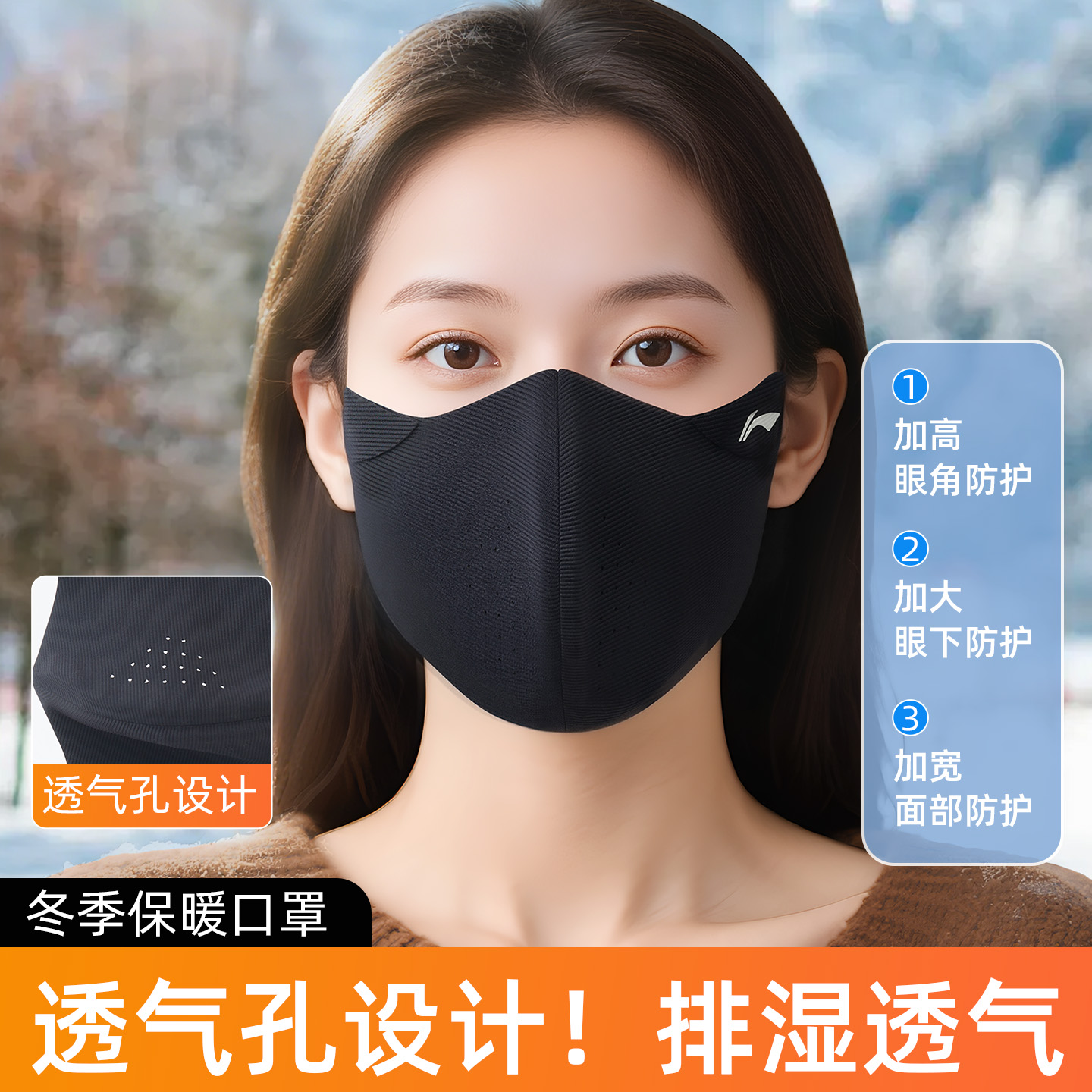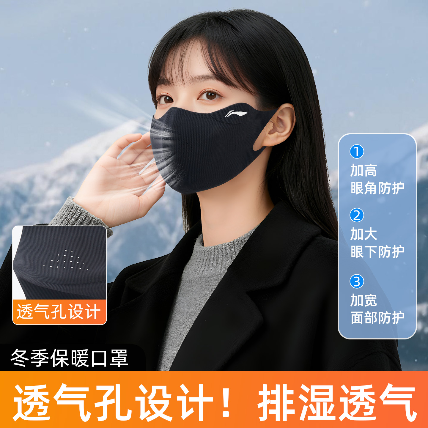 李宁保暖口罩高颜值百搭2025新款男士防风防寒骑行面罩透气防冻脸