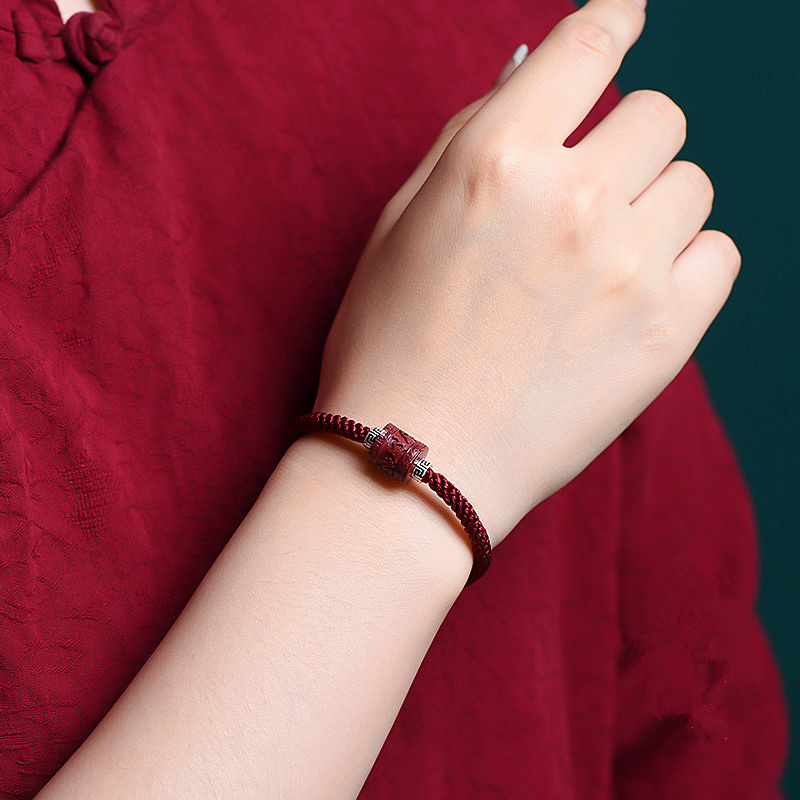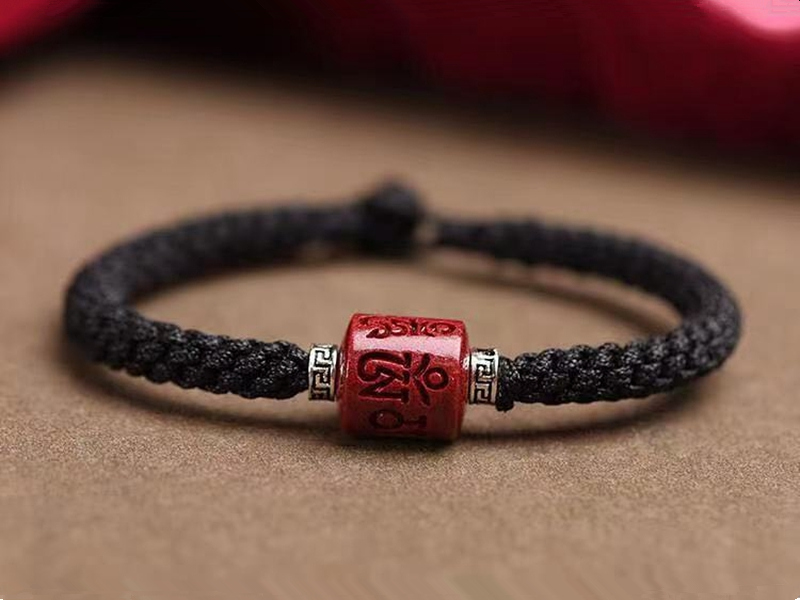 朱砂银手链 男款六字 真言手绳简约国风情侣本命年女随身手编手串