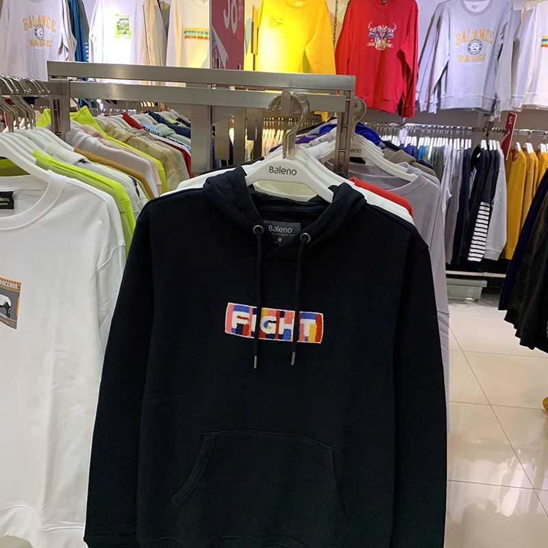 正品班尼路秋冬男装连帽纯棉帽衫拼色字母印花套头加绒卫衣男上衣