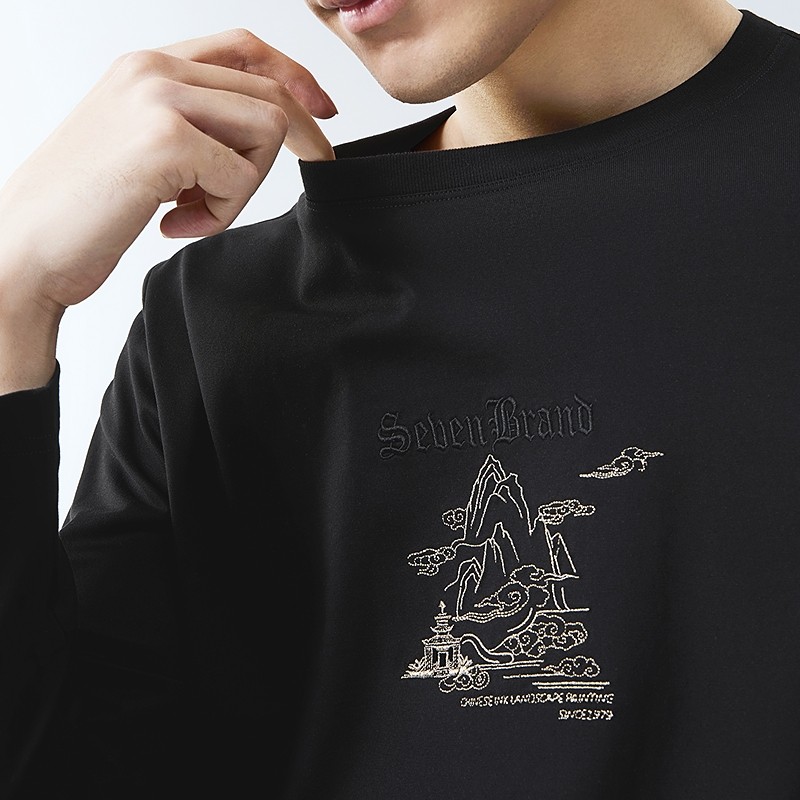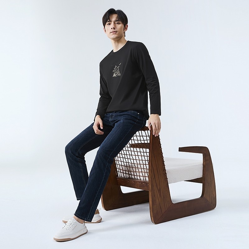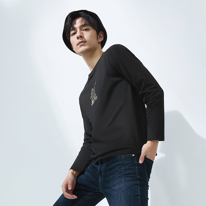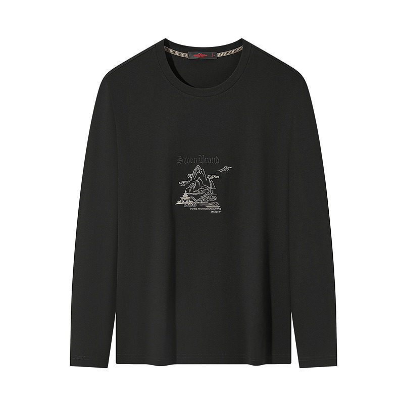 【新疆长绒棉】柒牌长袖男T恤2025春季新款休闲百搭黑色圆领上衣