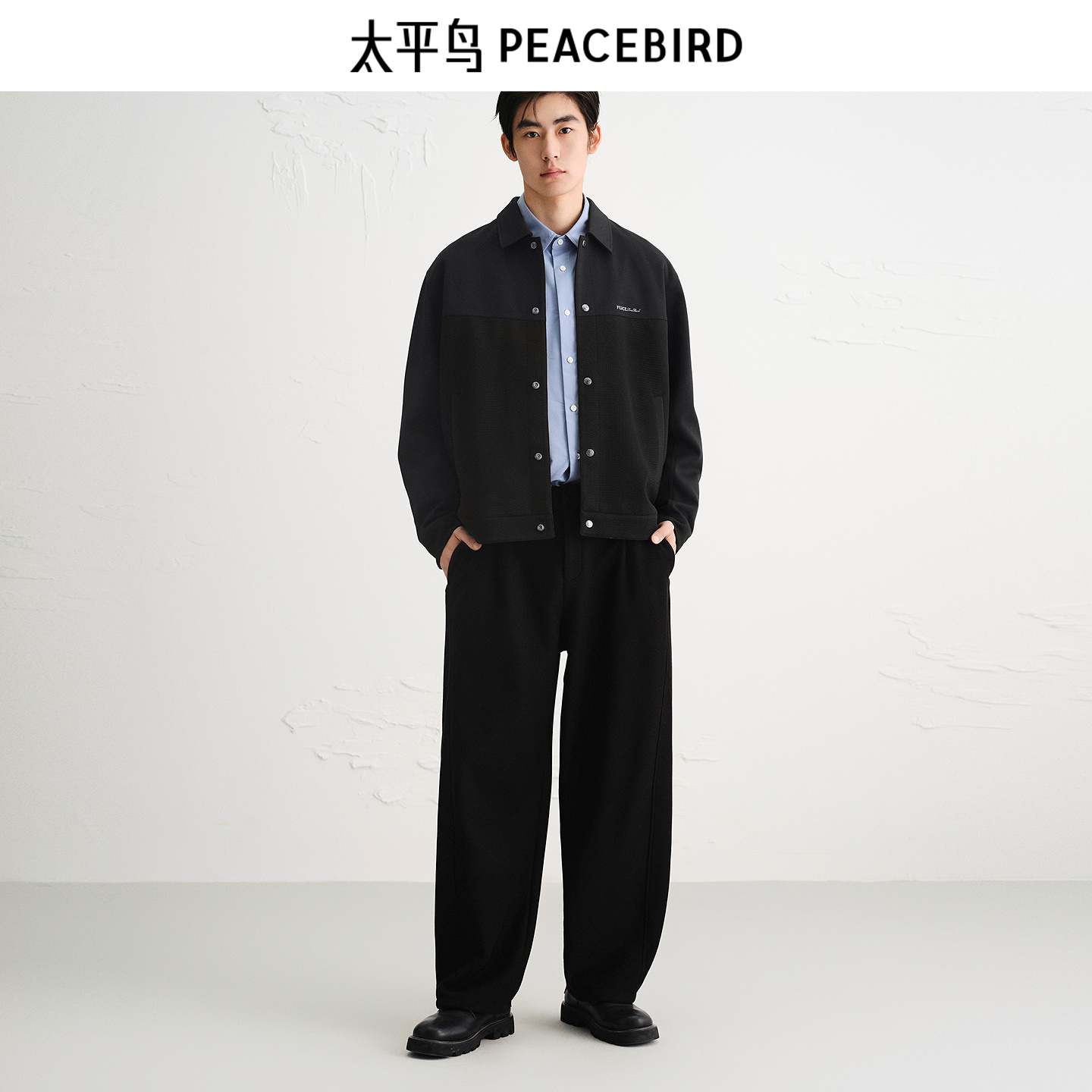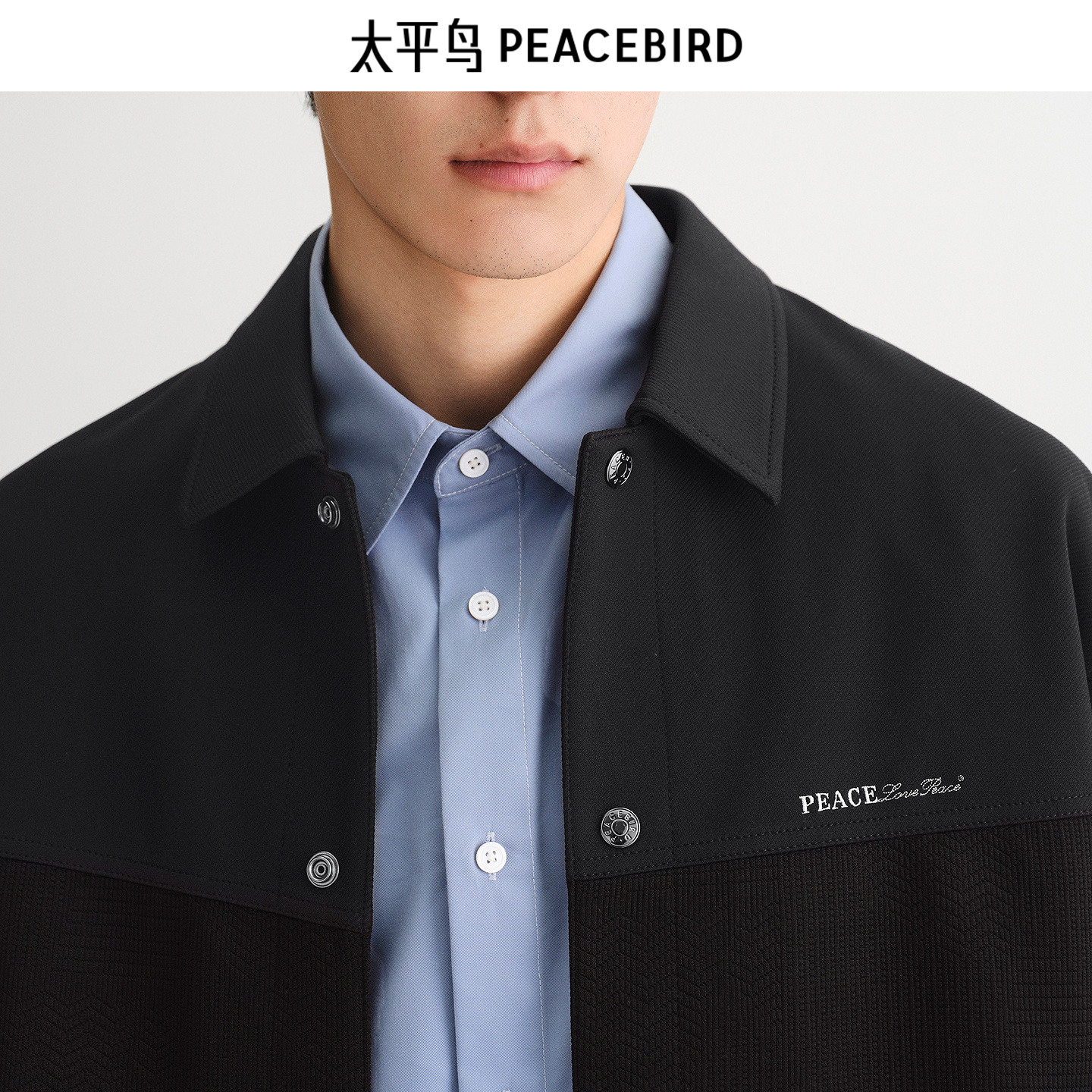 【提花】太平鸟男装刺绣通勤行政夹克拼接休闲外套翻领茄克