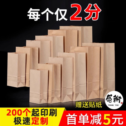 食品级牛皮纸袋汉堡烧烤外卖防油面包包装冰箱收纳一次性打包袋子