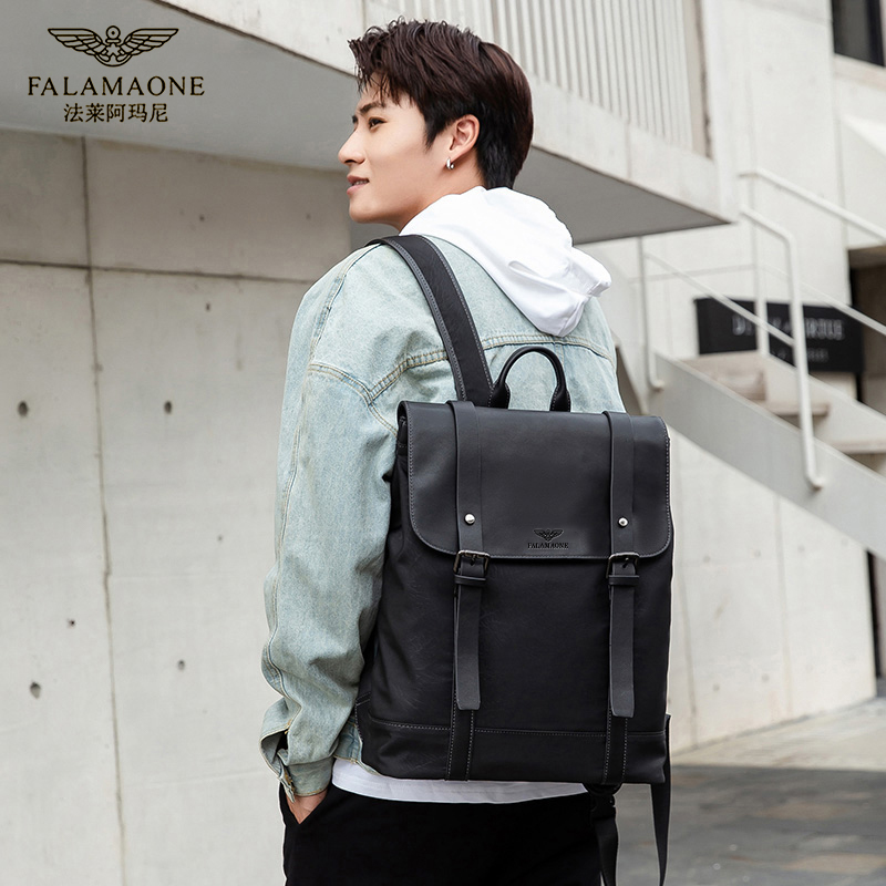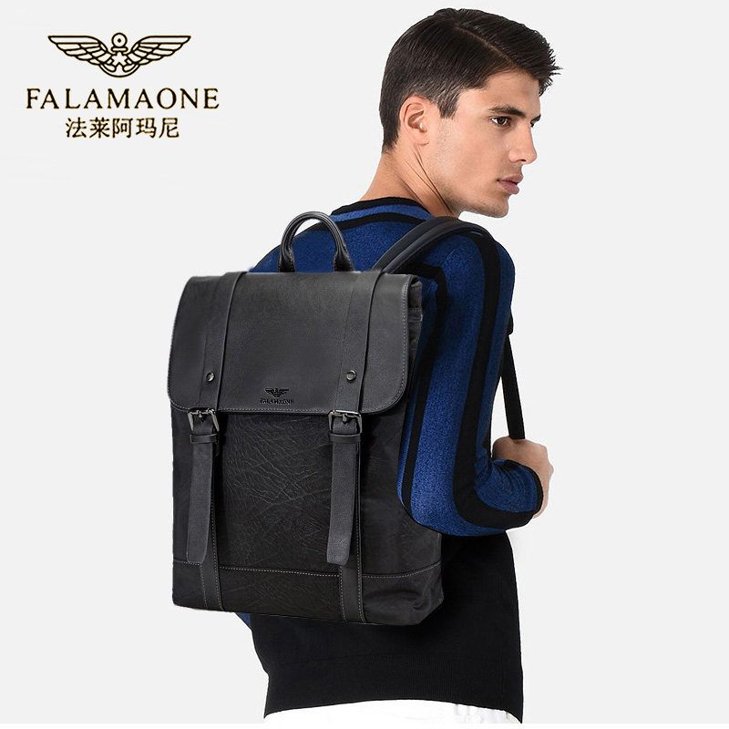 法莱阿玛尼男士双肩包休闲背包商务旅行包时尚潮流大学生书包潮牌