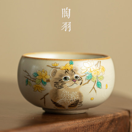 汝窑猫咪茶杯主人杯单杯开片茶盏高档个人专用功夫茶具陶瓷品茗杯