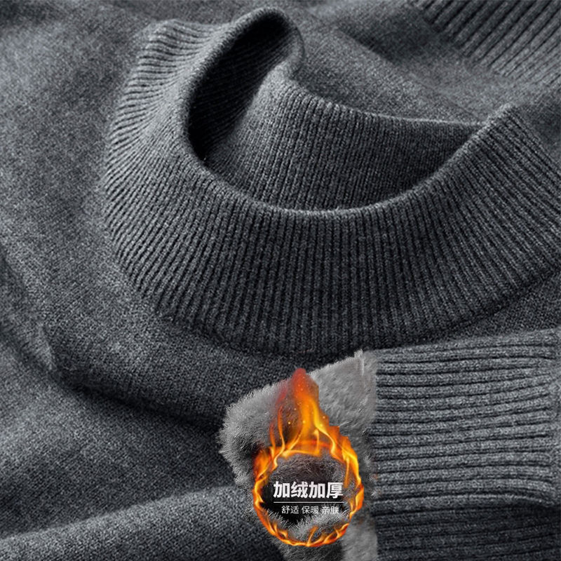 2025冬季新款一体绒纯色中领毛衣男加厚内搭毛衫半高领打底针织衫
