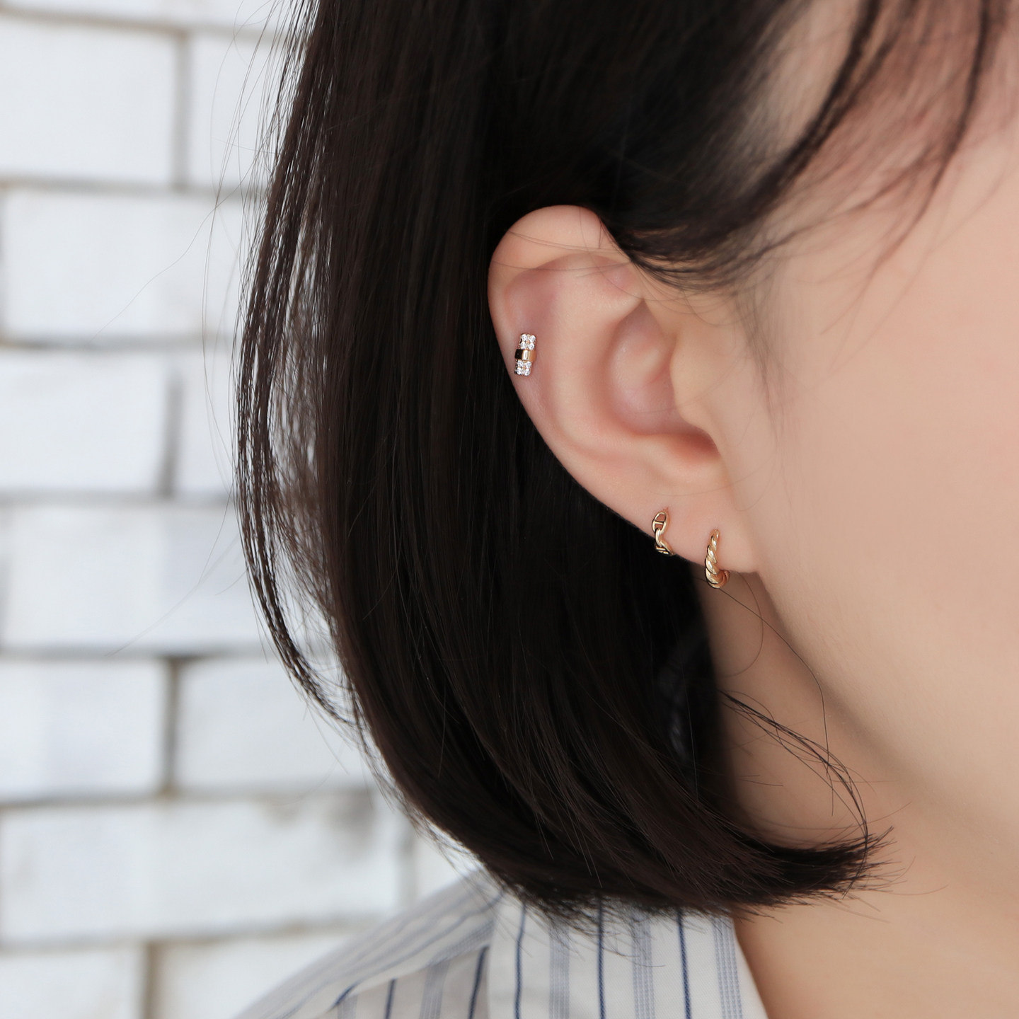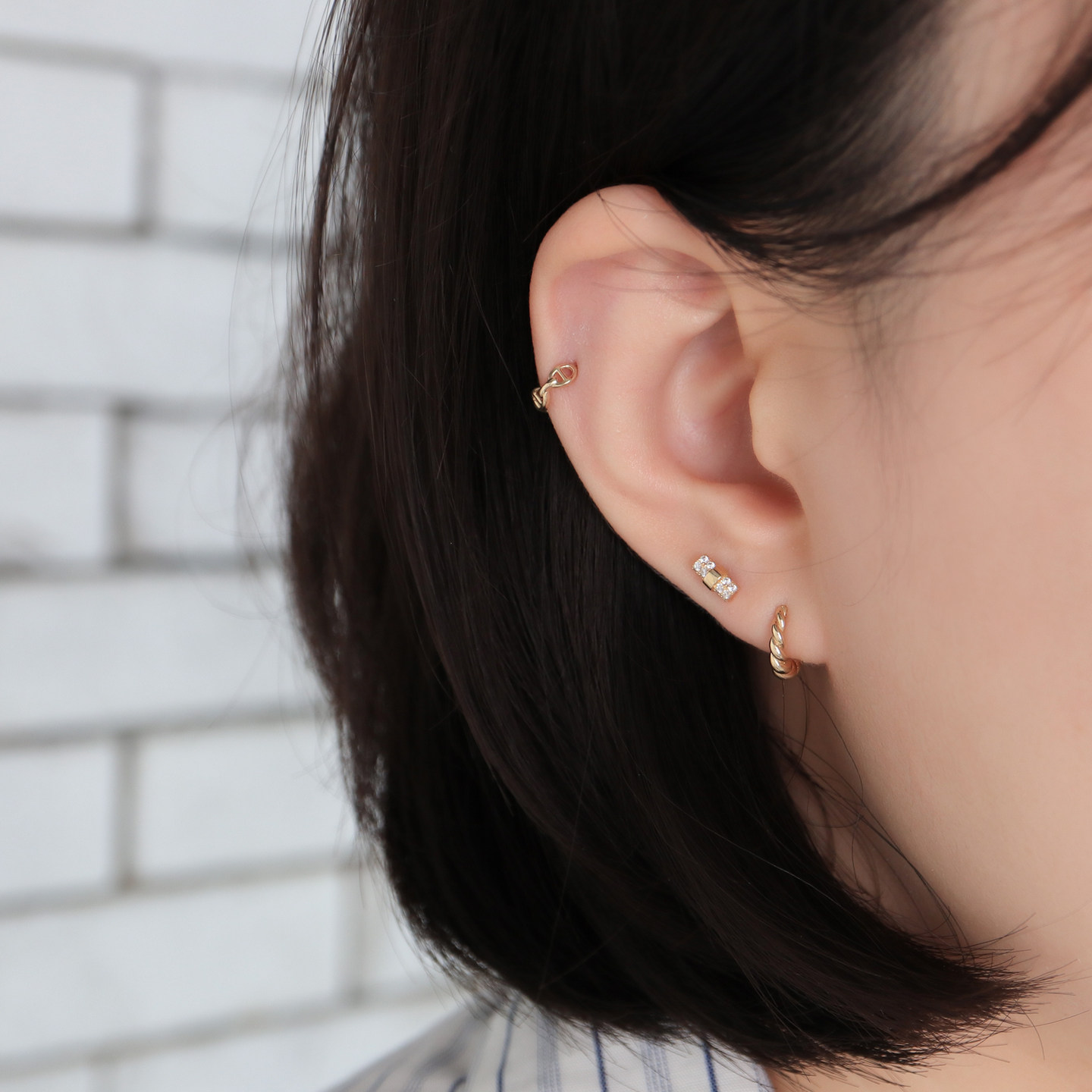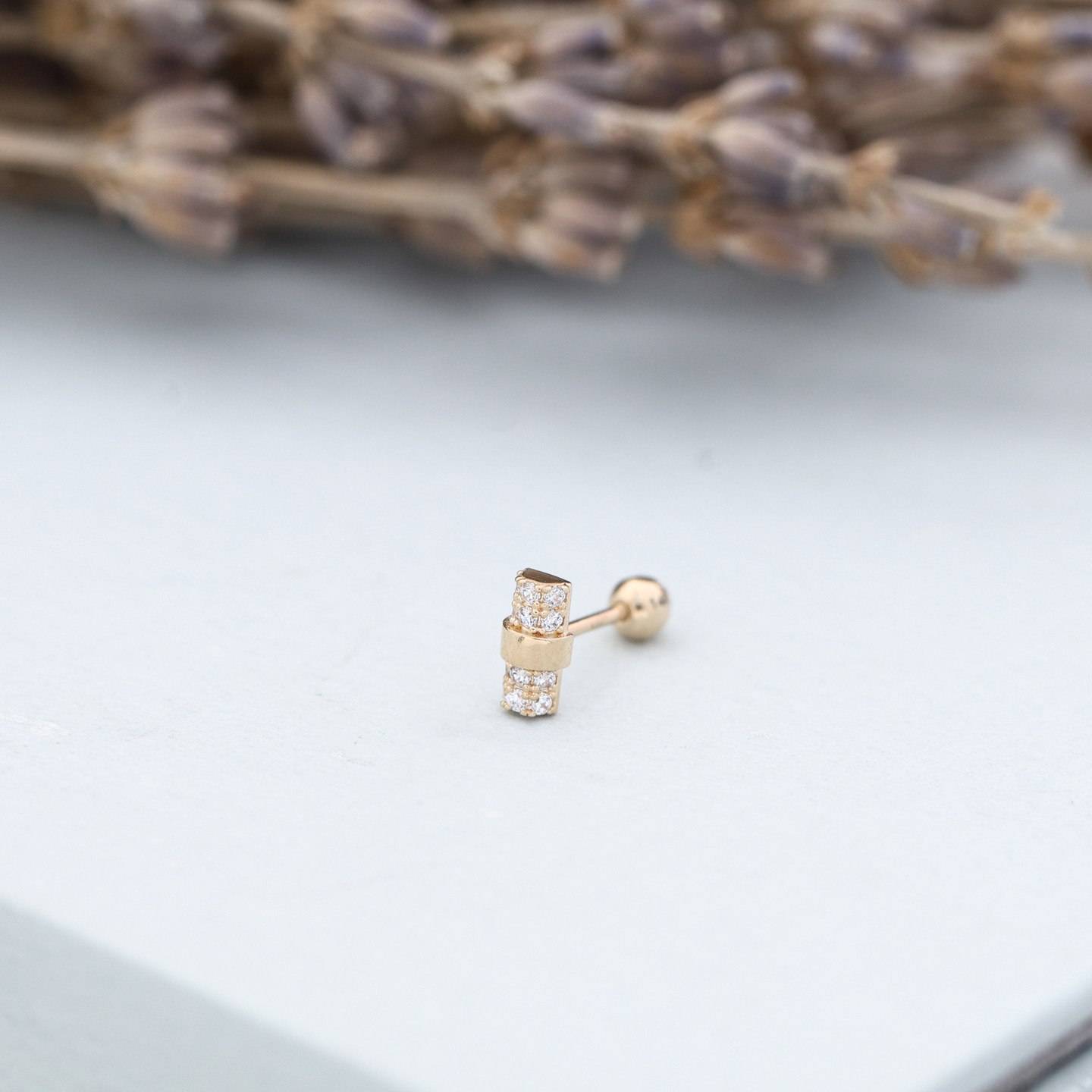 纯14K黄金耳钉满锆一字拧螺丝耳骨钉耳饰女款