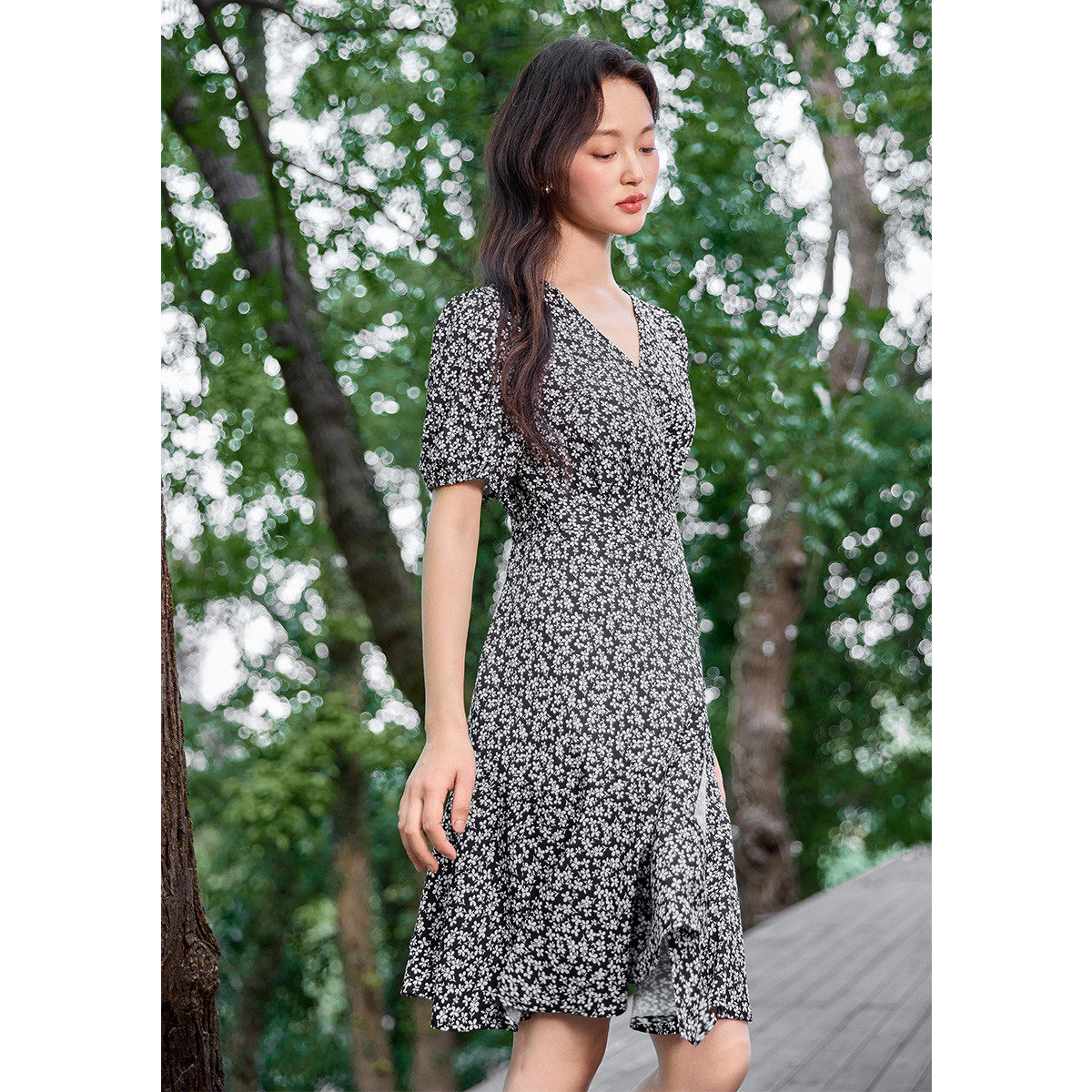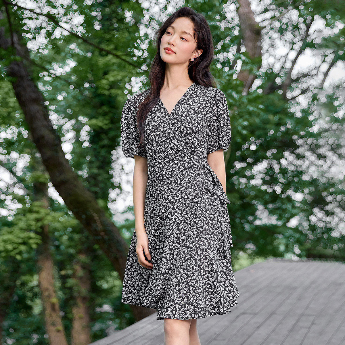茵曼2026夏季新款碎花雪纺连衣裙女特别独特漂亮掐腰显瘦巨好看的