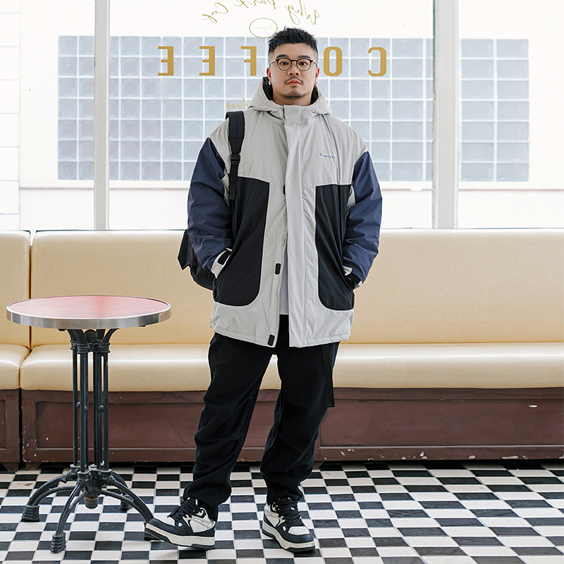 韦恩泽维尔大码户外撞色棉服男防风防水秋冬宽松连帽外套潮8457