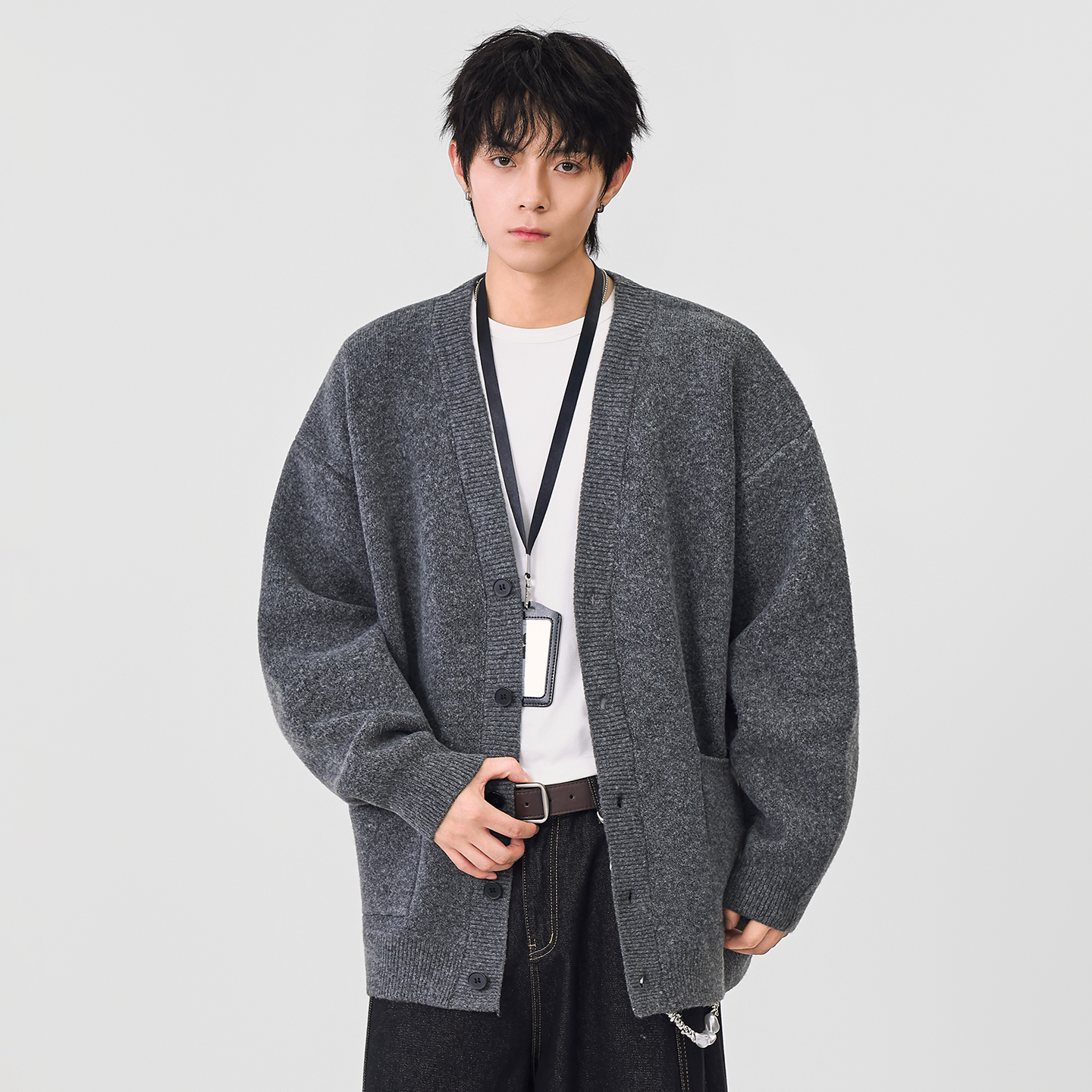 CHAN MONTH秋冬季潮牌复古休闲系扣针织衫V领毛衣男上衣外套开衫