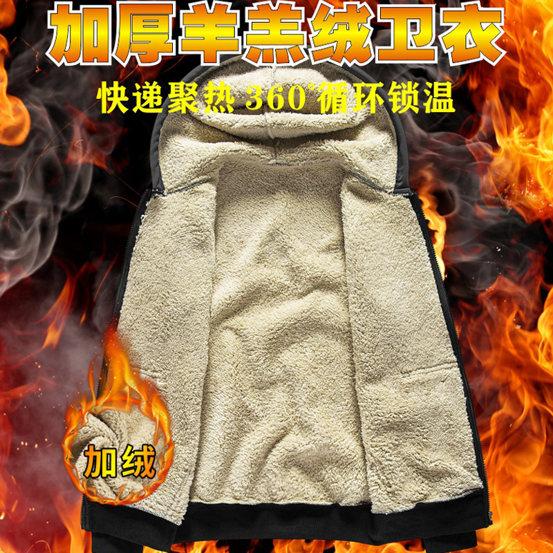 秋冬季新款羊羔绒保暖男士卫衣开衫连帽拉链百搭休闲加绒加厚外套