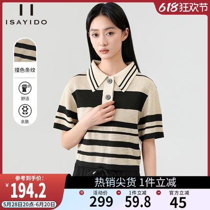 傲丝度POLO领针织衫2025夏季新款条纹简约通勤宽松短袖T恤女上衣
