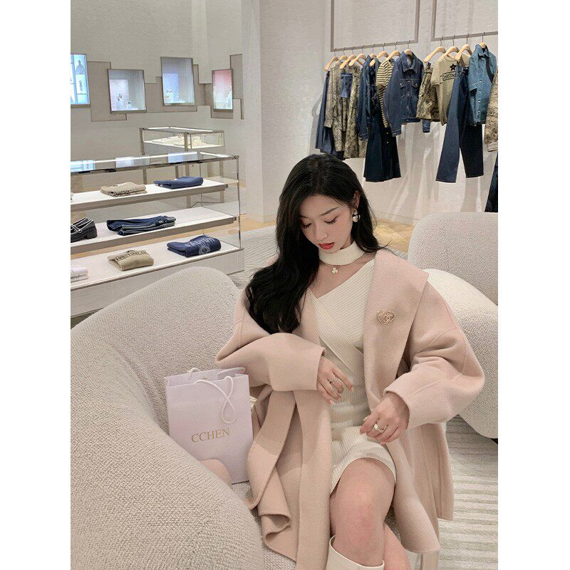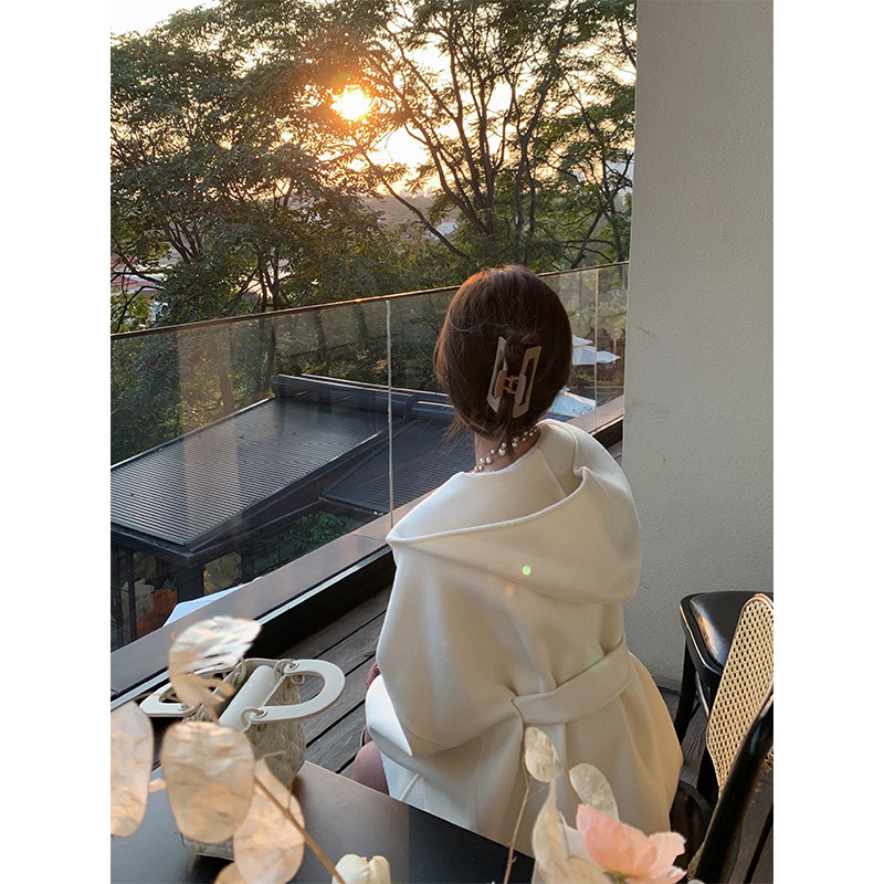 cchen陈陈_白色斗篷毛呢外套女秋季短款羊毛双面呢羊绒大衣小个子