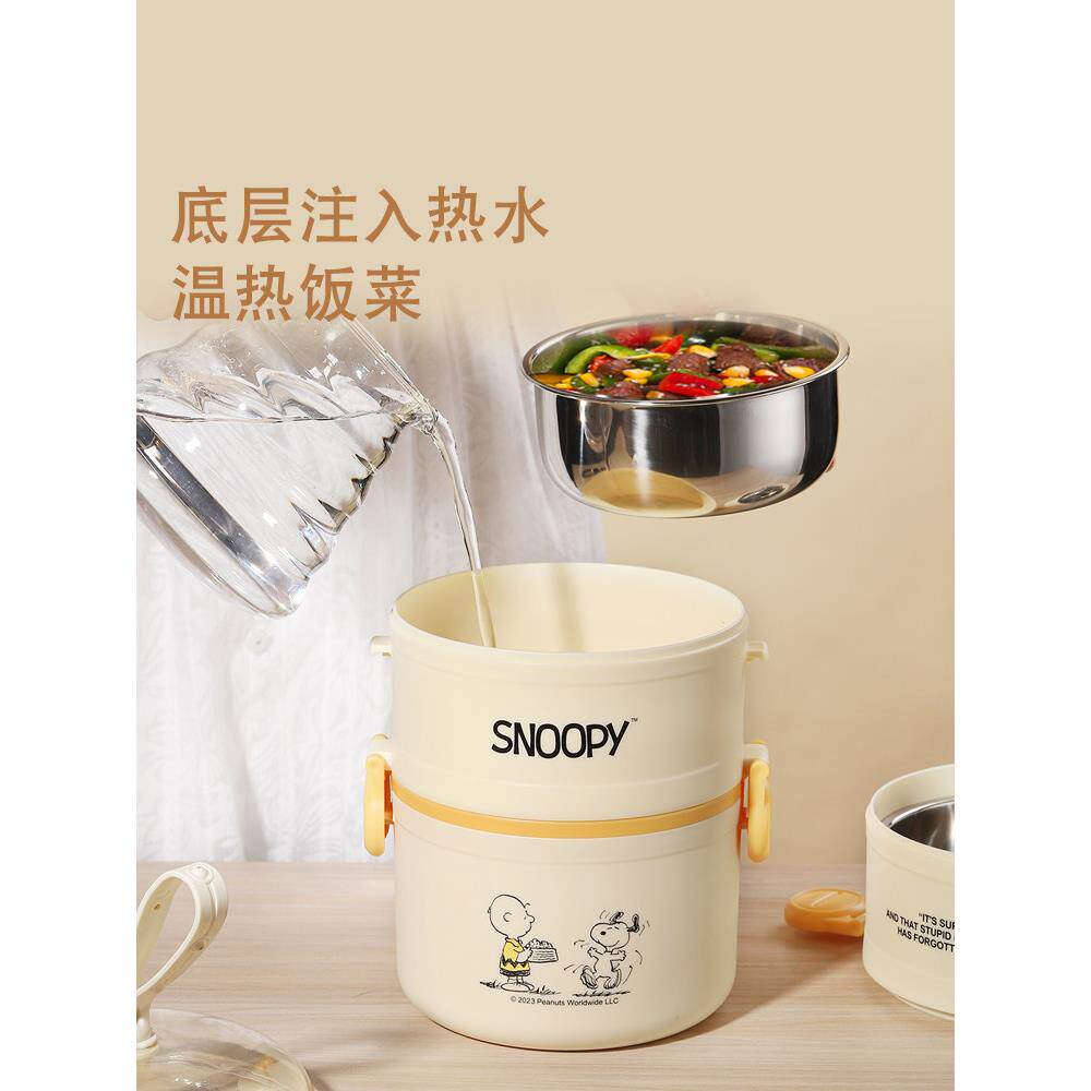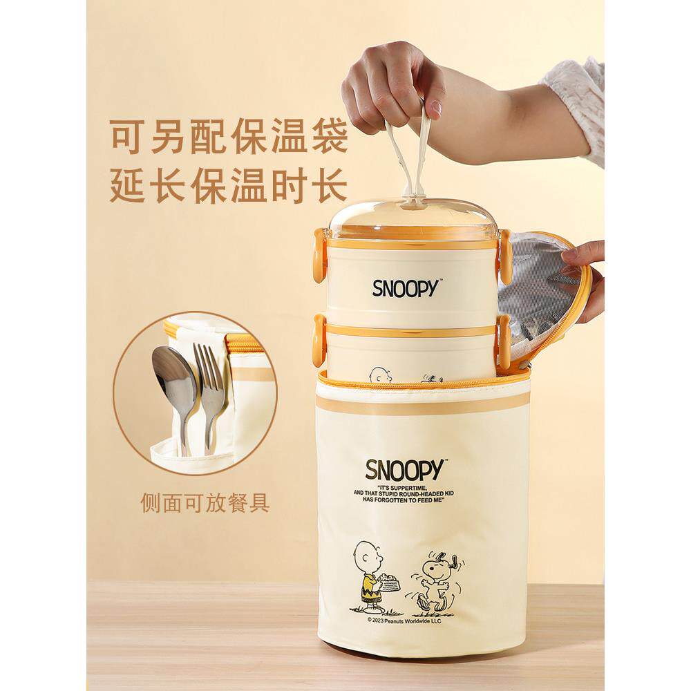 史努比304不锈钢三层饭盒上班族便当盒可微波炉加热学生食堂打饭