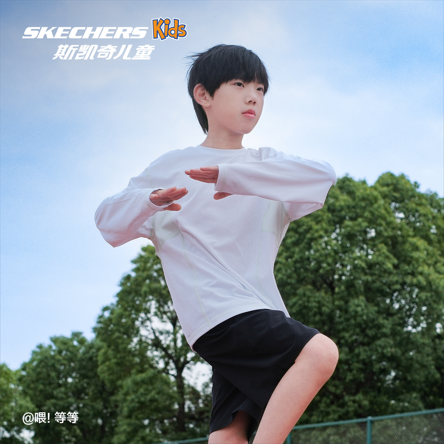 Skechers斯凯奇旋风速干T儿童运动上衣吸湿排汗男童秋装长袖t恤