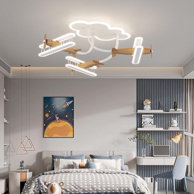 儿房灯灯创意卡通实木童室飞机奶油风幼儿园智能FYN卧吸顶灯中山