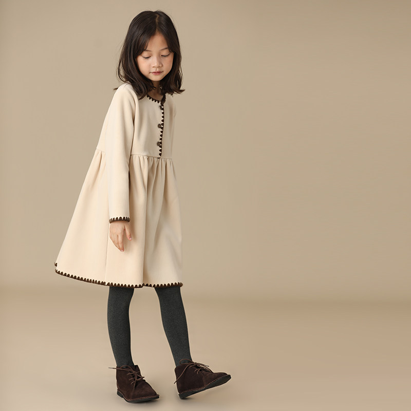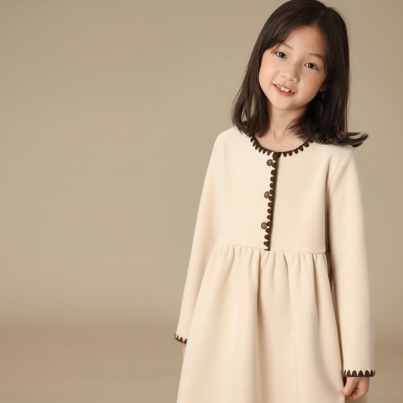 哈齿童装秋冬新品女童重磅加绒加厚纯手工刺绣宝宝长袖亲子连衣裙