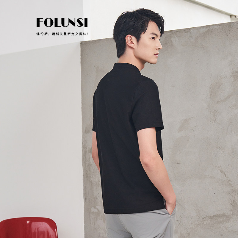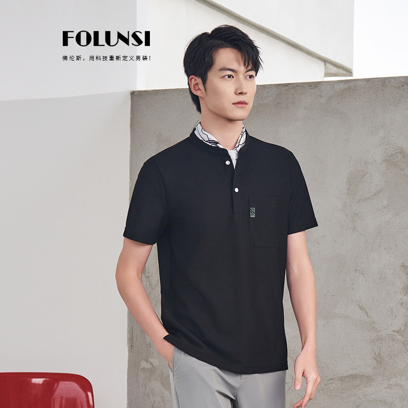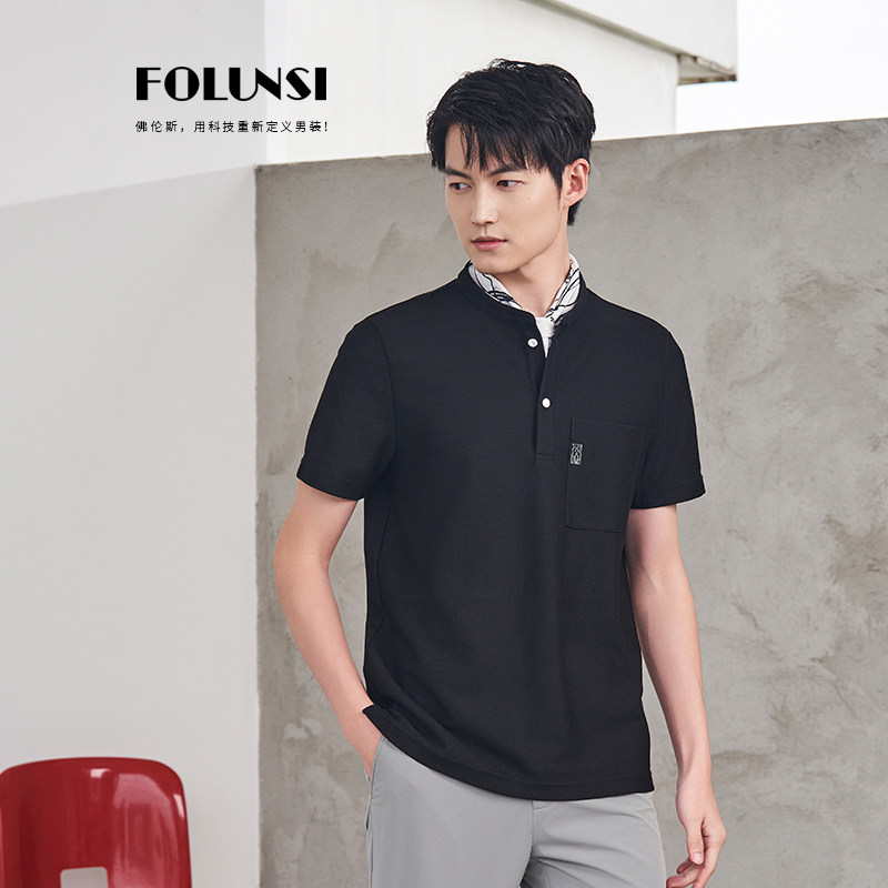 佛伦斯FOLUNSI男装上衣中式休闲半袖2024男士t恤短袖男夏季小立领