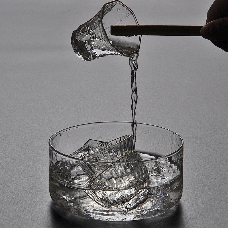 日式锤纹玻璃茶洗水洗大茶碗水盂茶渣桶杯洗笔洗沙拉碗建水