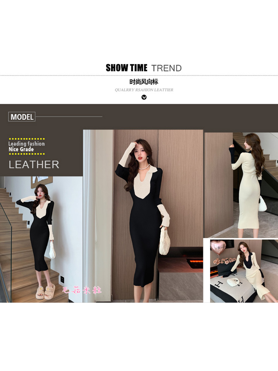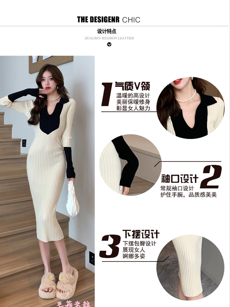 针织连衣裙女秋冬季2025新款法式polo领气质撞色高级感打底裙内搭