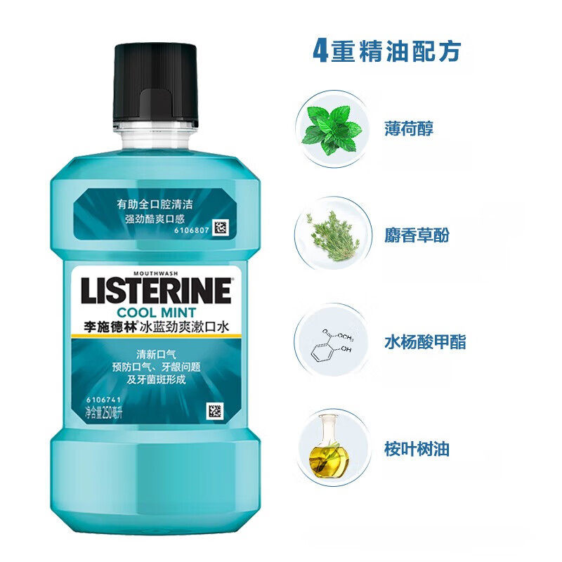 李施德林漱口水冰蓝劲爽零度250ml抗菌去口臭清洁牙渍口气清新
