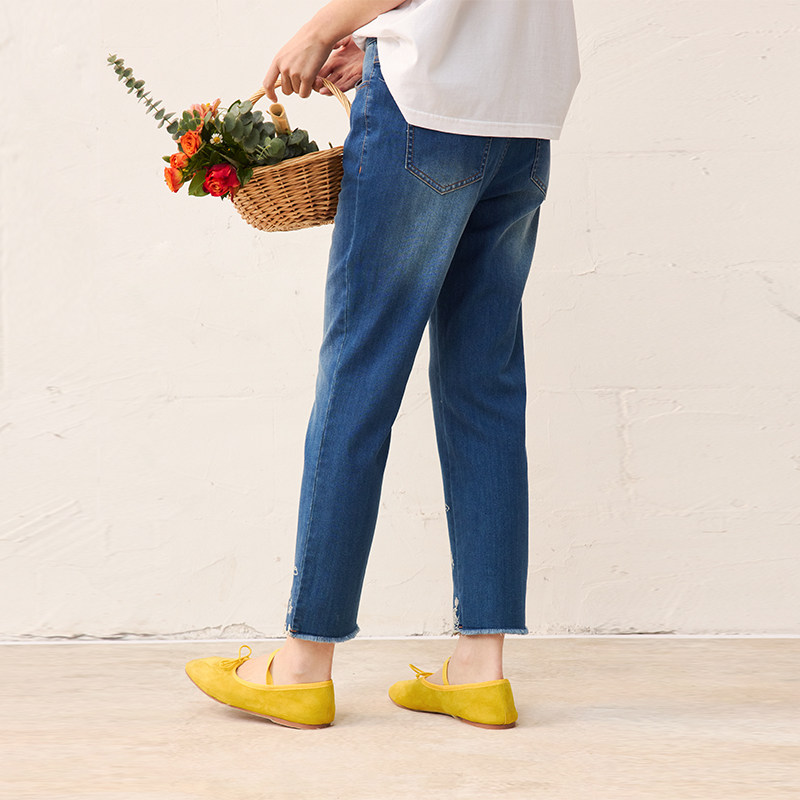 非鱼25春夏新款轻薄洗水牛仔裤女装刺绣牛仔百搭显瘦七分裤修身裤