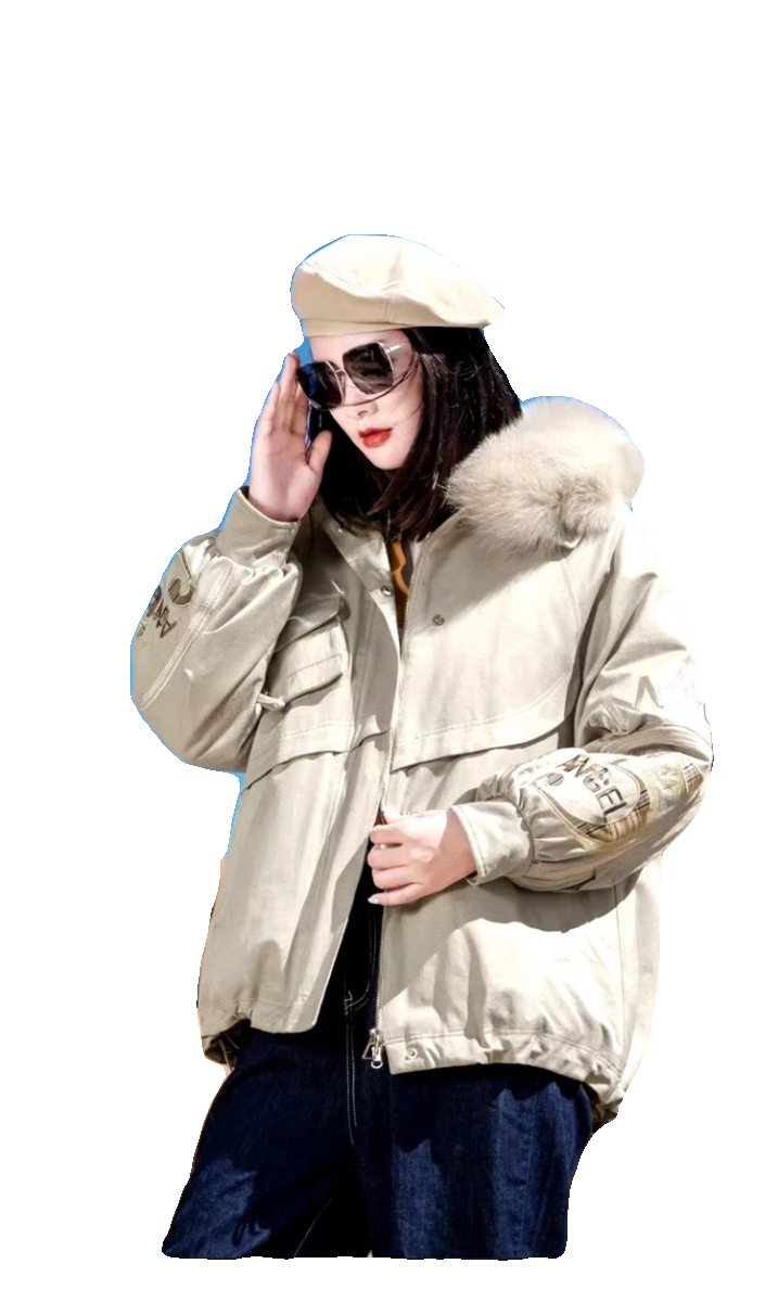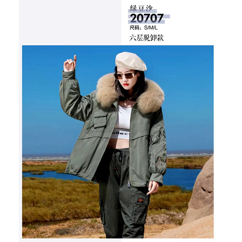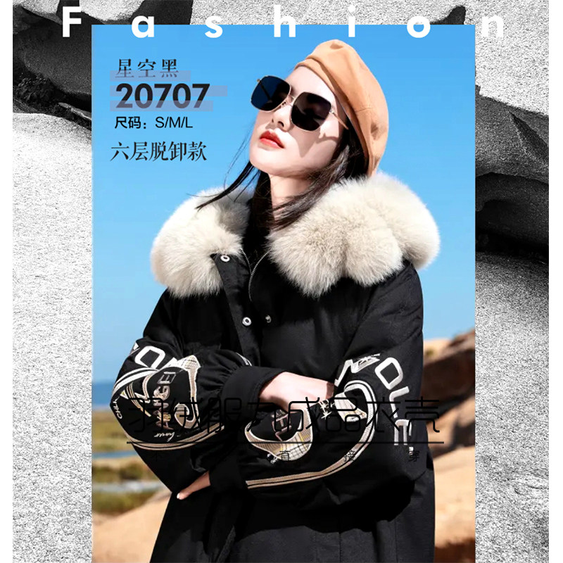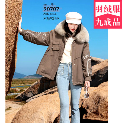 女士休闲宽松版脱卸款羽绒服半九成品活里活面内胆可拆卸派克服新