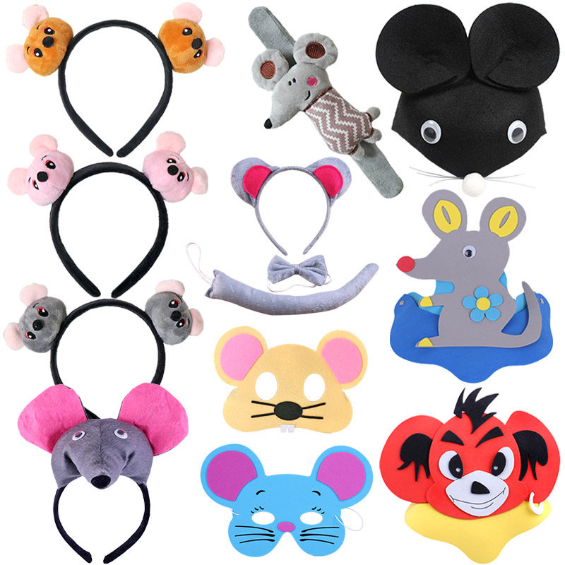 老鼠头饰鼠年发箍头箍头饰幼儿园表演面具帽啪啪圈道具
