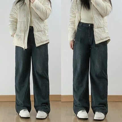 2-300斤大码胖mm美式复古高腰牛仔裤女宽松显瘦加肥加大阔腿裤子