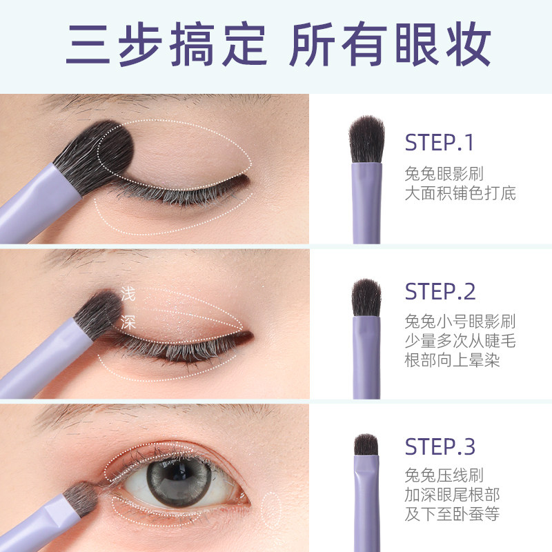 郭小妞兔兔眼影刷套装三件套动物毛卧蚕刷细节刷晕染化妆师专用