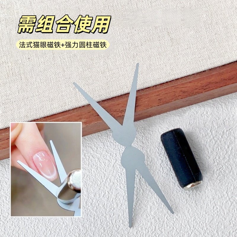 美甲V形双头法式猫眼铁片圆柱磁铁吸铁石吸猫眼组合辅助工具