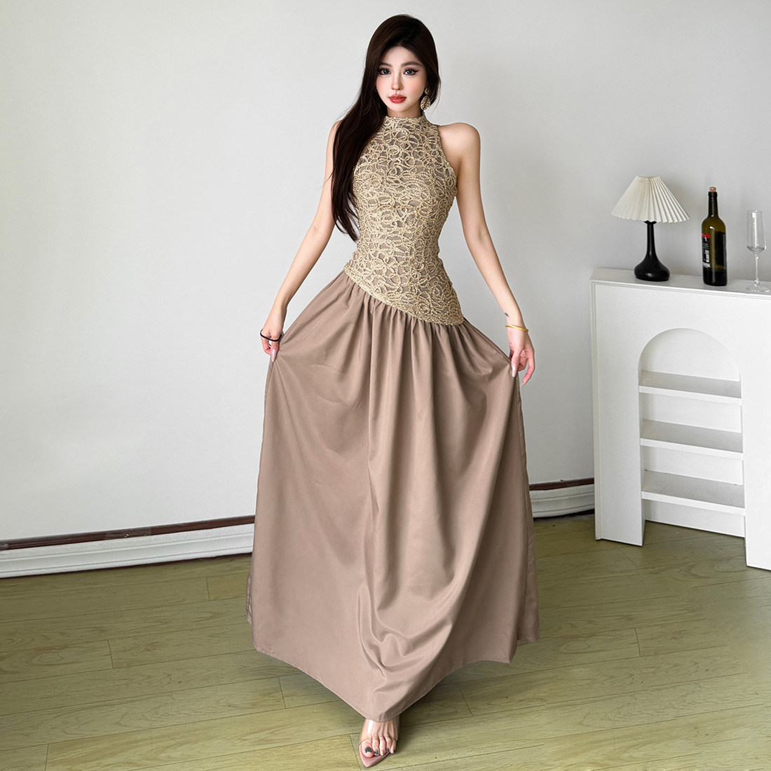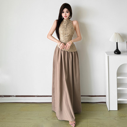 #Sisjuly#法式复古典雅 纹理贴布设计高级感拼接修身背心连衣裙女
